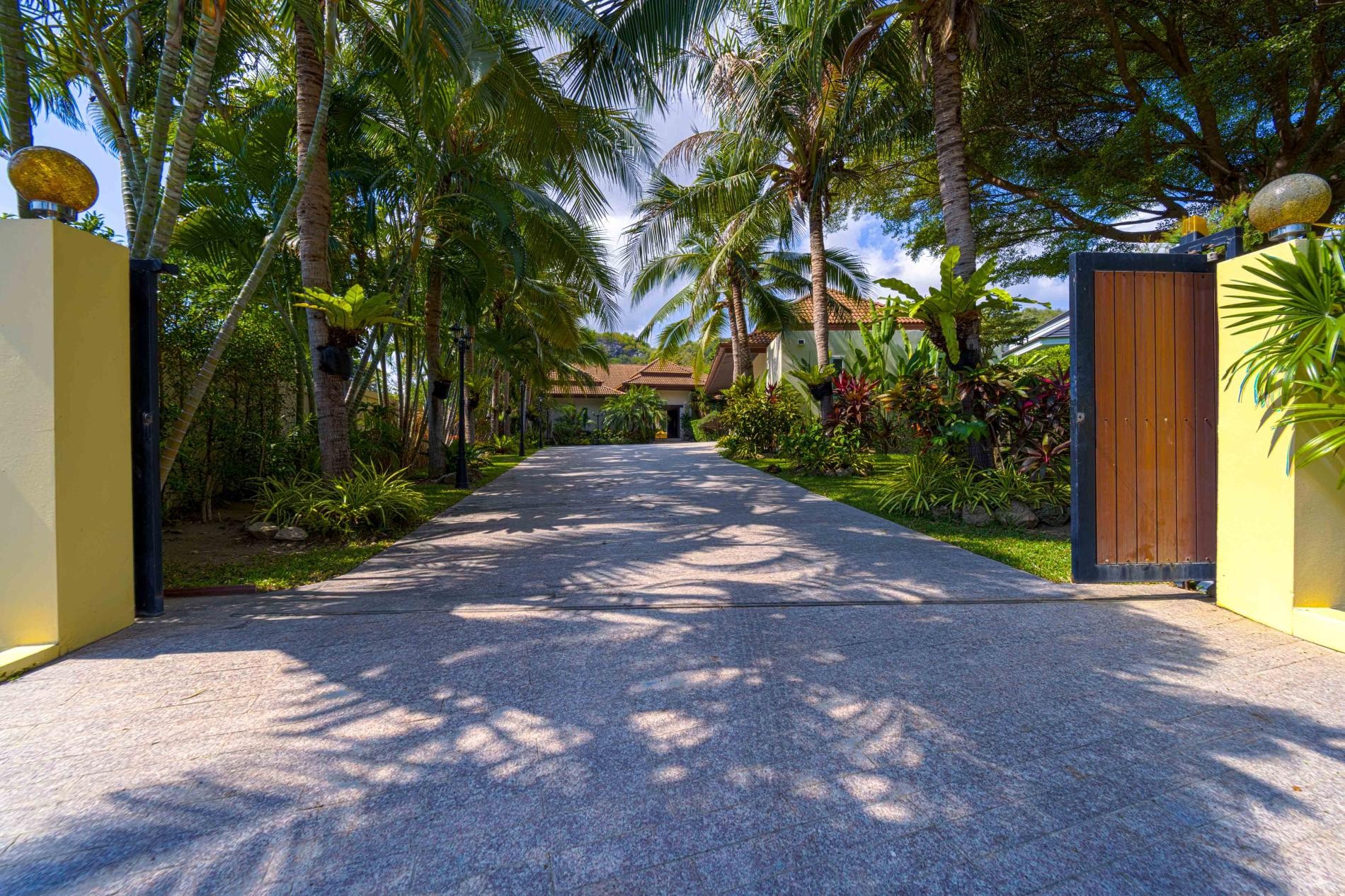 Set within the tranquil grounds of Palm Hills Golf Course, this six-bedroom tropical villa offers a serene escape just 15 minutes from Hua Hin’s vibrant city centre. Expansive open-plan interiors feature a European-style kitchen, spacious dining area and a fully equipped gym, with each ensuite bedroom providing privacy and comfort. Premium TV packages with local and international channels are available in every room.
