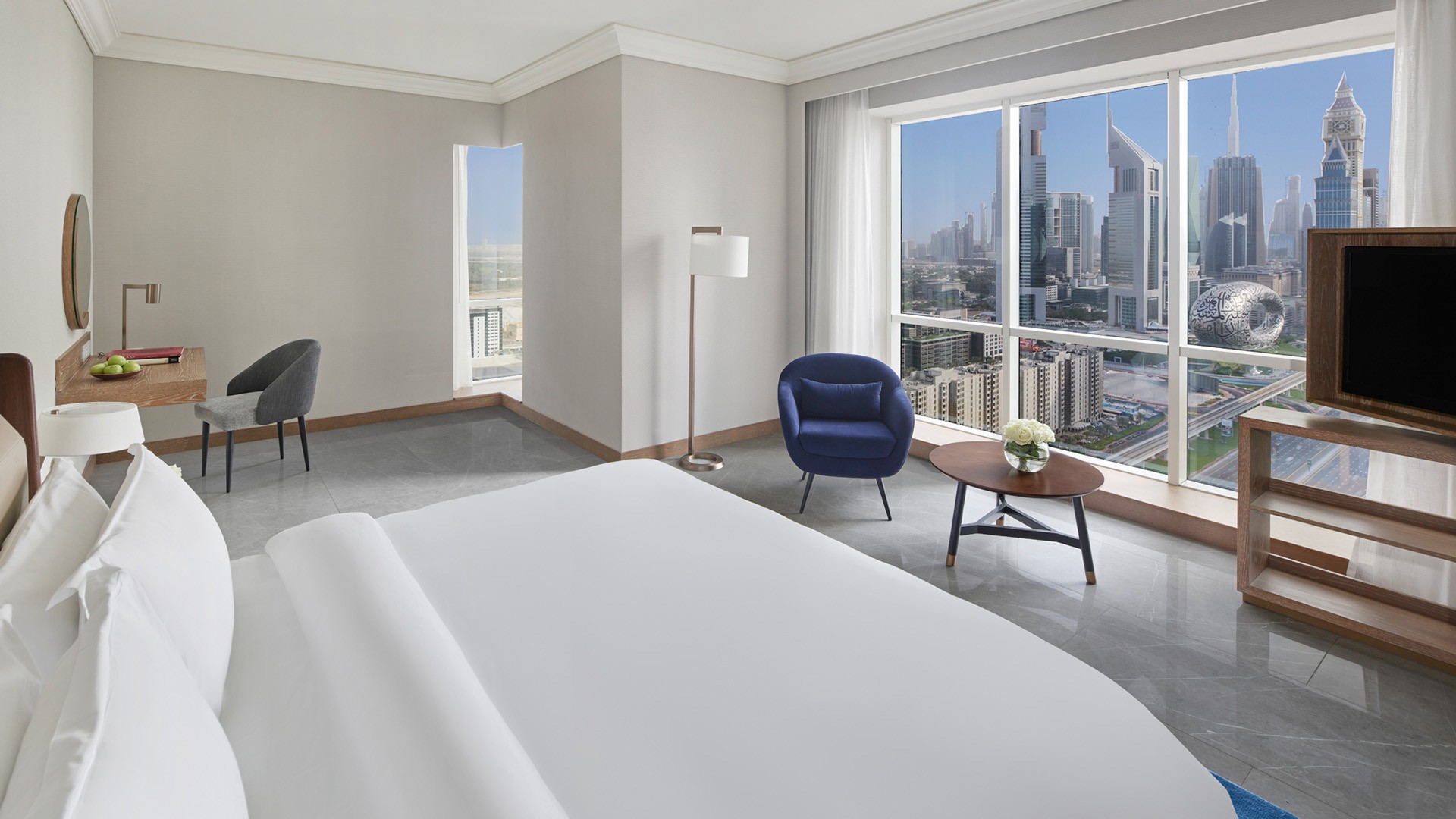 Fairmont Dubai is perfectly situated in the heart of Dubai, offering easy access to the world-renowned Burj Khalifa and the Dubai Mall, both just a 10-minute drive away. The hotel is located approximately a 15-minute drive from Dubai International Airport (DXB). Airport transfers are included in select packages only, please see the Fine Print for details.