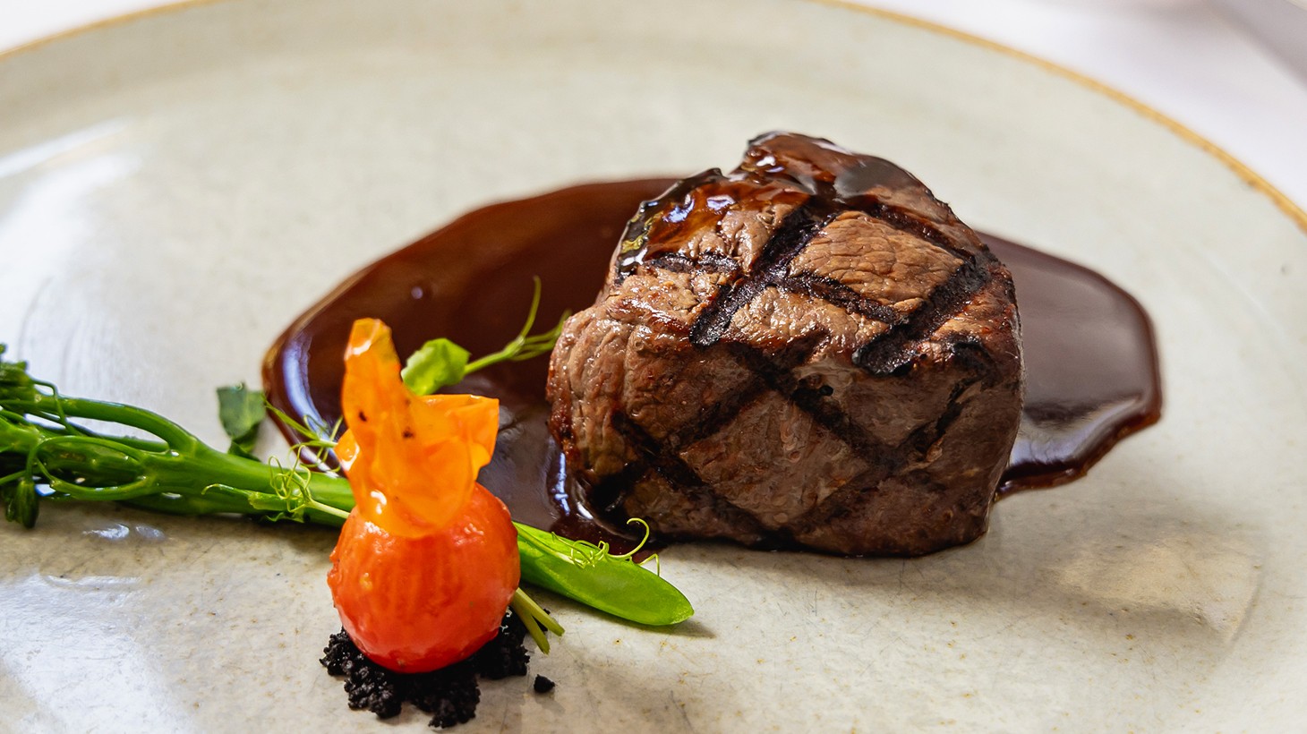 - 250g Black Angus tenderloin, 100-day grain fed, dry aged, best served medium rare