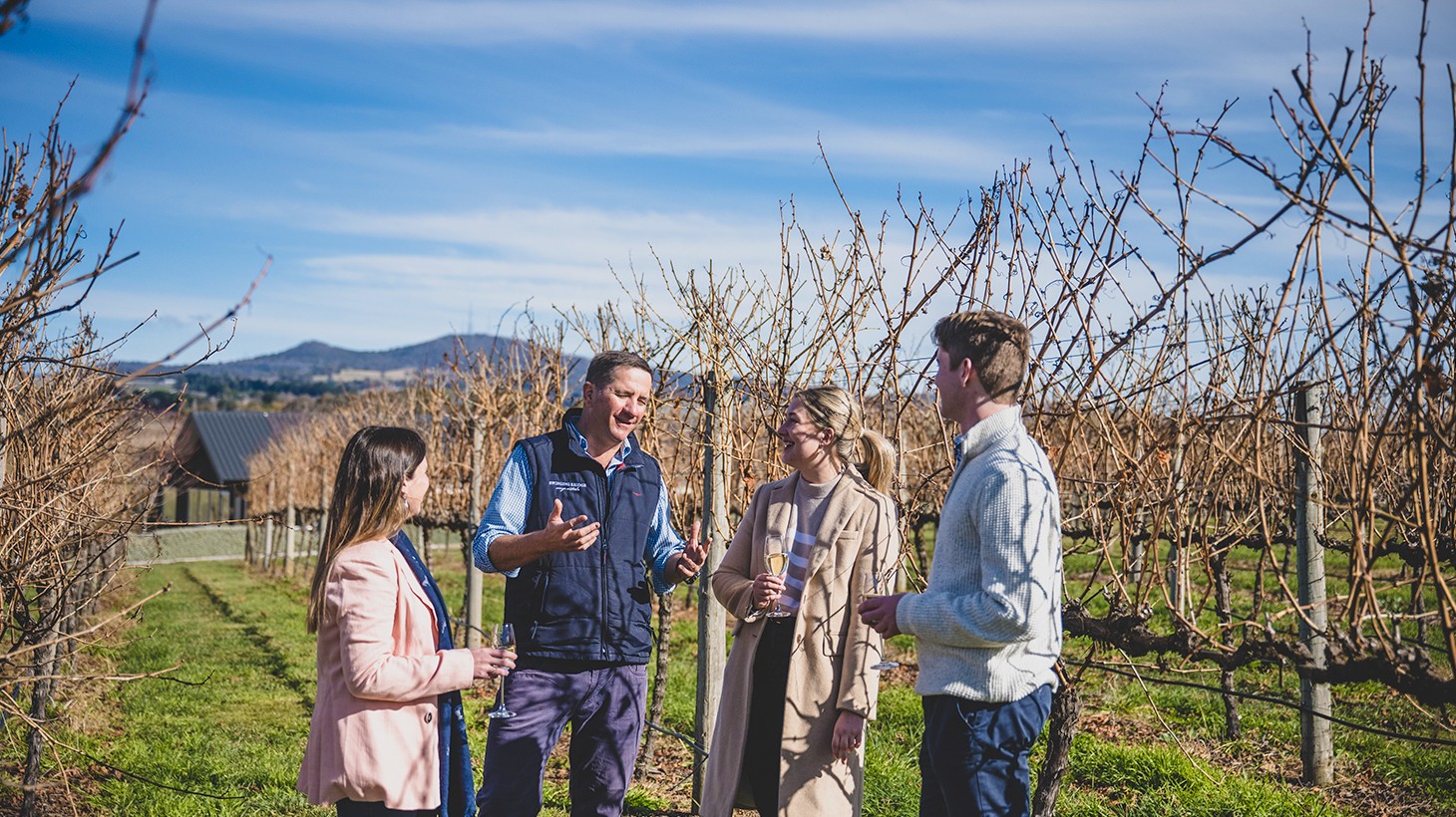 Elevate your experience of wine with a tasting journey at Swinging Bridge Wines, nestled beneath the majestic Mount Canobolas in Orange. Enjoy tastings of up to seven wines, thoughtfully paired with canapés handcrafted by the in-house chef to bring out their nuanced flavour profiles. As you sip and savour, your seasoned host will lead you through the Swinging Bridge story and share winemaking insights for an insightful adventure at this premium cellar door.