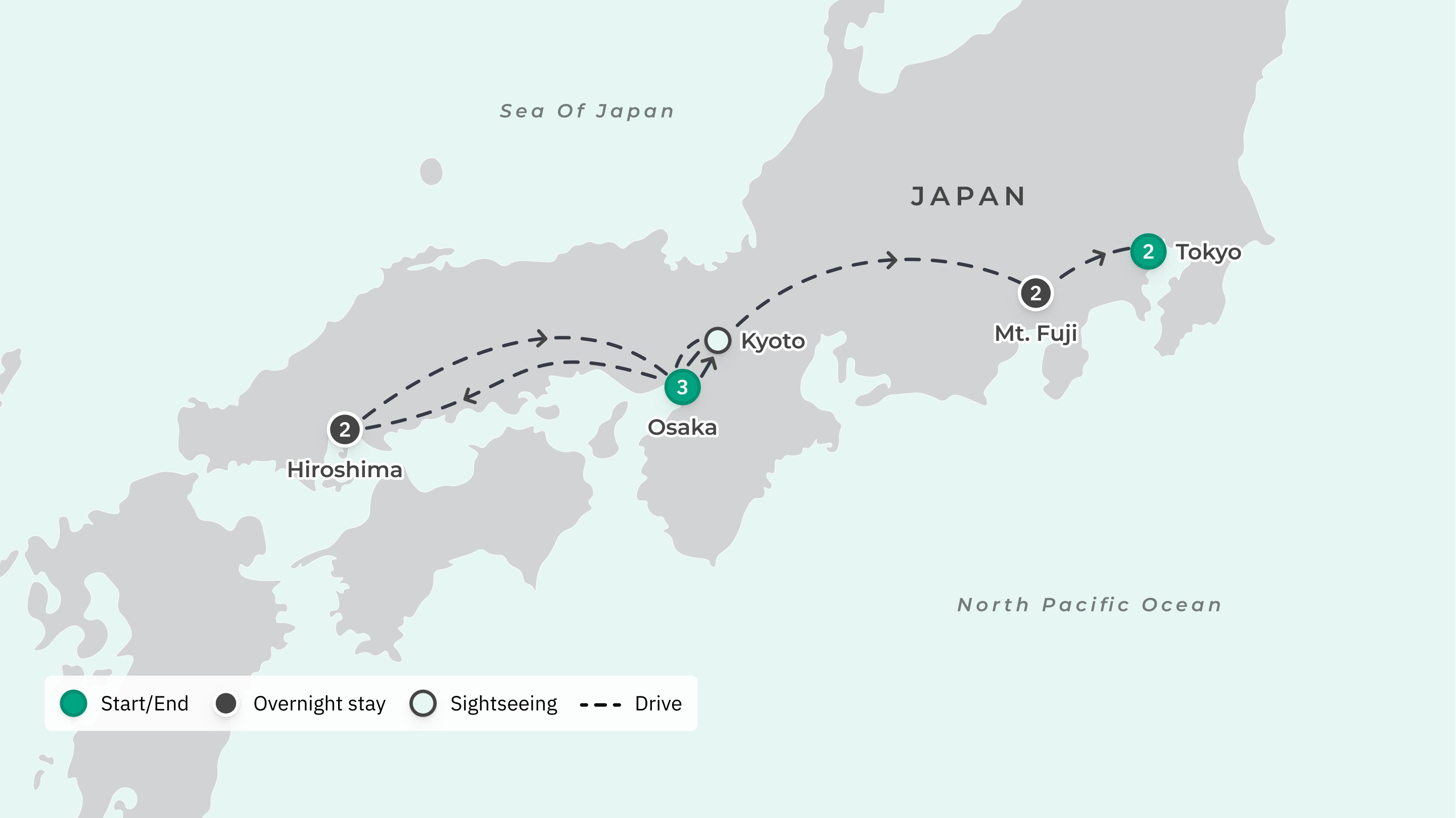 Your journey takes you from Australia to: Osaka — Himeji — Hiroshima — Miyajima Island — Nara — Kyoto — Mt. Fuji — Tokyo.