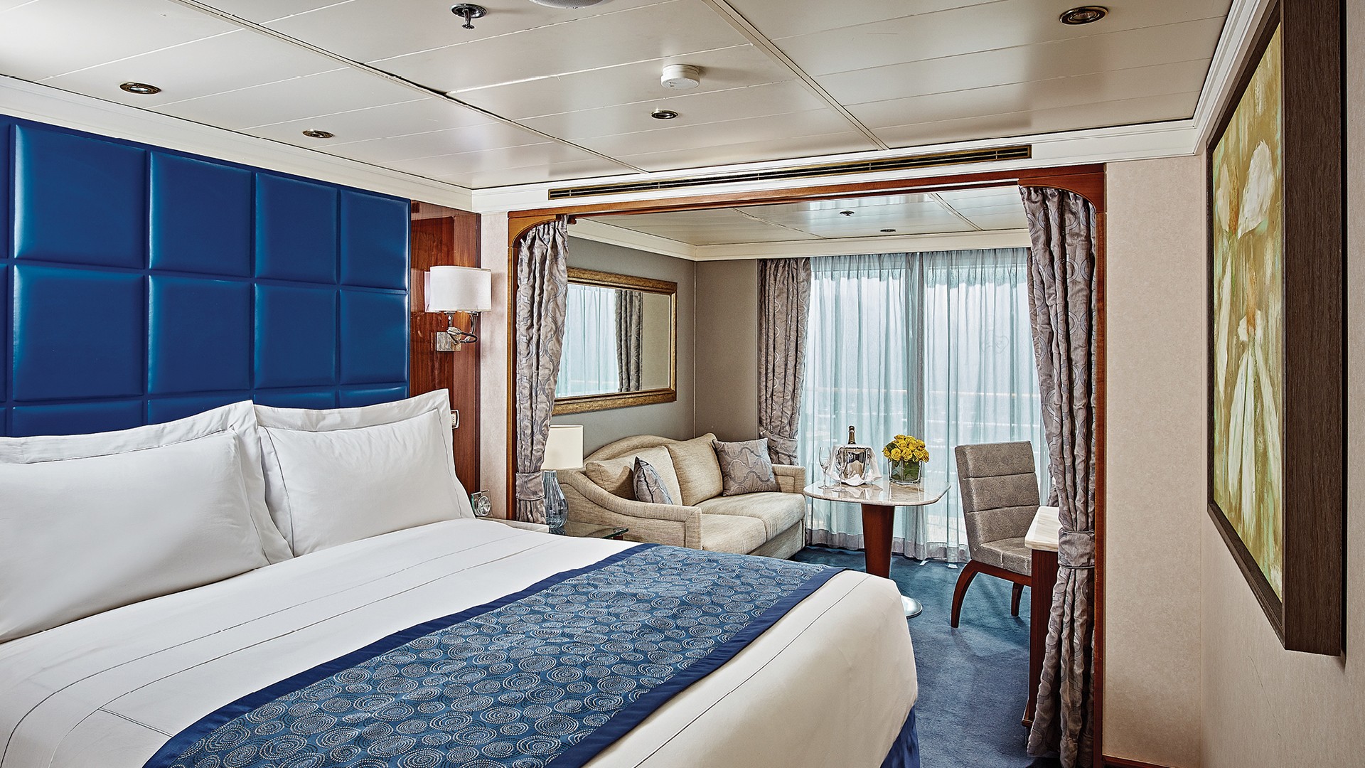 - Open bars and lounges plus in-suite mini-bar replenished daily