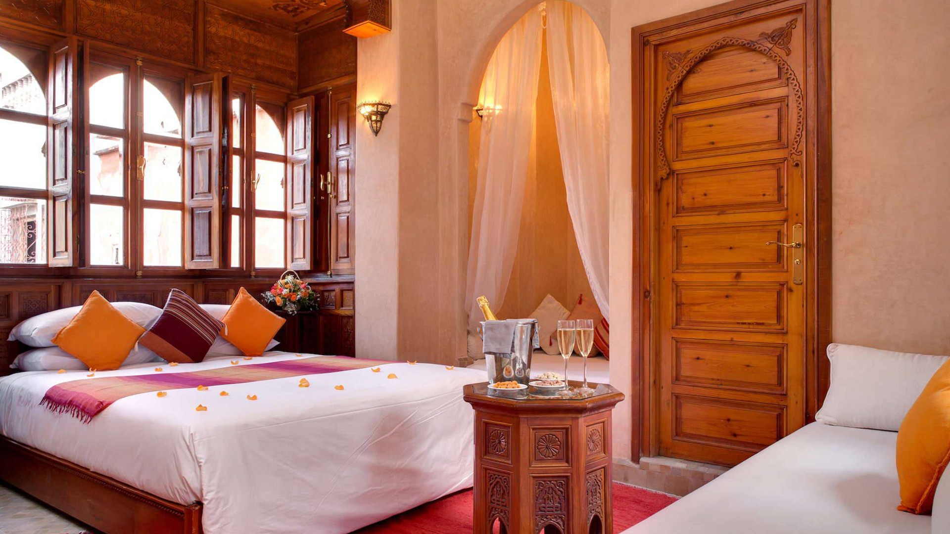 Only minutes from the bustling sights and sounds of Jemaa el-Fnaa, Angsana Riads Collection offers a secluded oasis in the heart of Marrakesh. The hotel is located an approximately 15-minute drive from Marrakesh Menara Airport (RAK). Airport transfers are not included in your package; please plan accordingly.