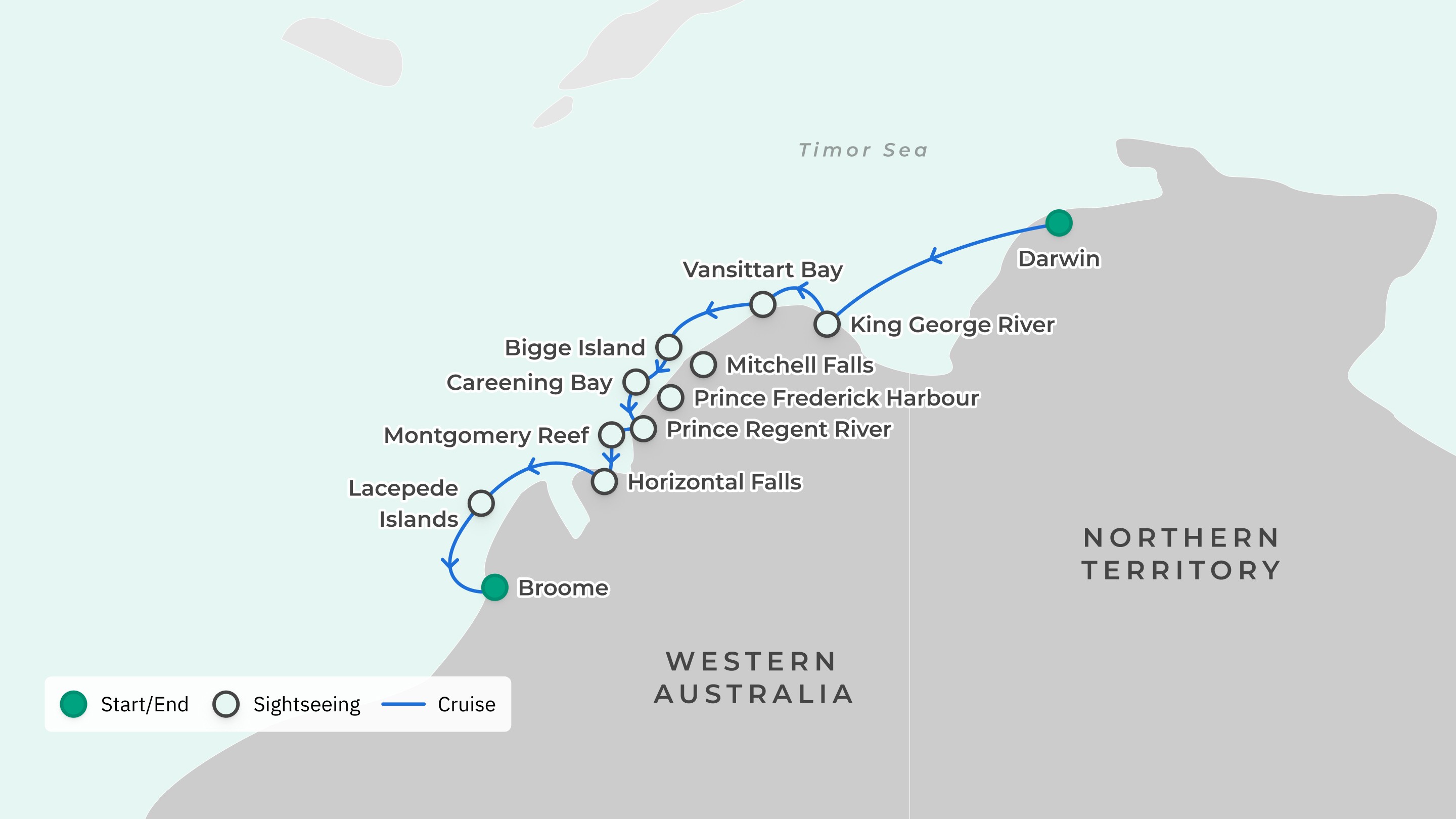 Your adventure begins in Darwin and ends in Broome.