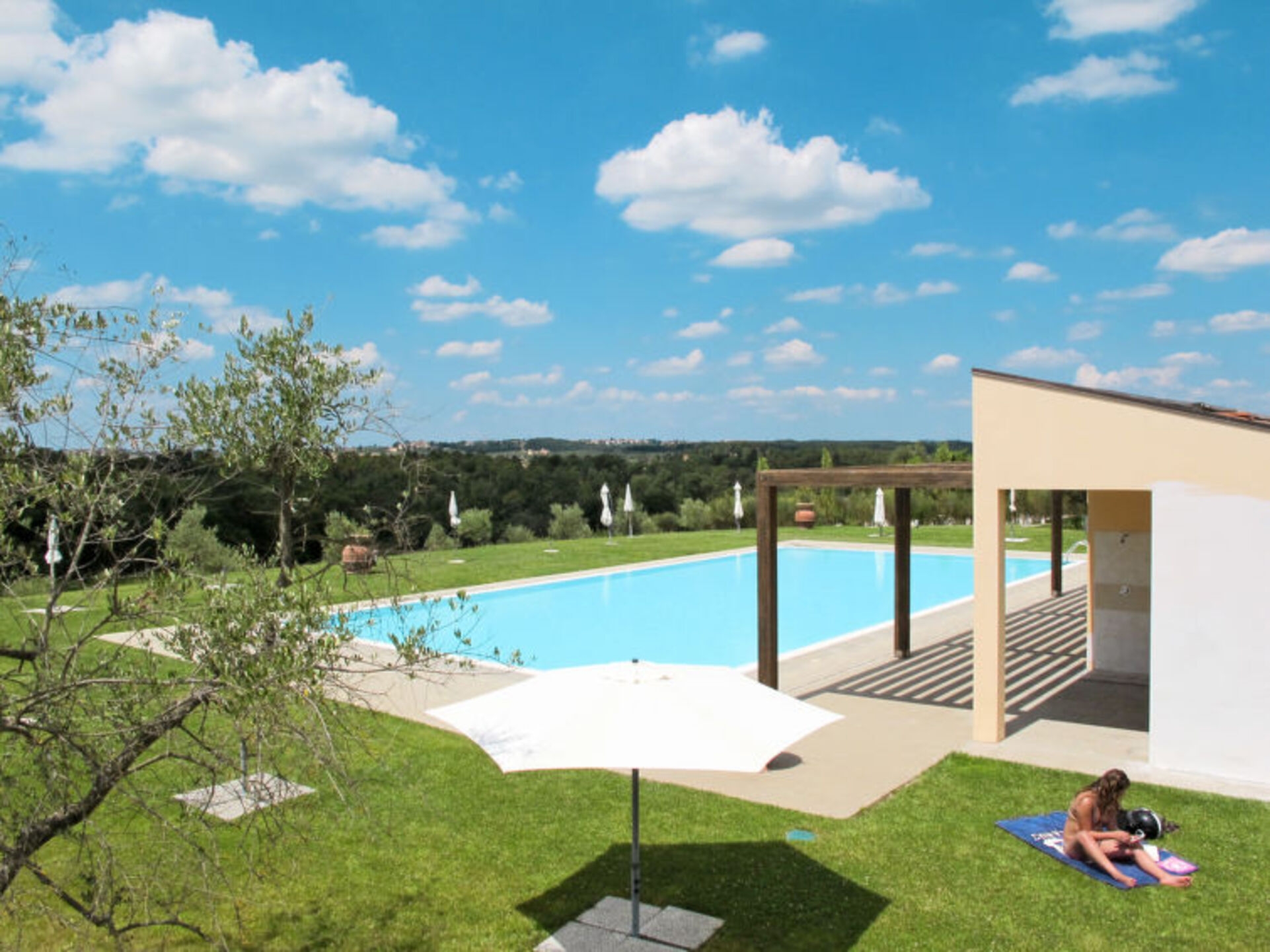 “Tuscany Villa 1035”, 4-room semi-detached house 100 m2, on the ground floor. Object suitable for 5 adults + 1 child. Bright, beautiful and modern furnishings: living room with satellite TV and wood-burning stove. Exit to the terrace. 1 double bedroom. 1 room with 2 beds (80 cm). 1 room with 1 french bed (130 cm), shower/WC. Open kitchen (oven, dishwasher, 5 gas rings, freezer, electric coffee machine) with dining table. Exit to the terrace. Bath/WC. Floor heating. Natural stone floors. Large terrace 50 m2 partly roofed, garden 400 m2. Terrace furniture, barbecue, deck chairs (4). Beautiful view of the countryside. Facilities: washing machine, iron, children’s high chair, baby cot for up to 2 year olds. Internet (WiFi, extra). Reserved parking space n 2 (roofed). Please note: suitable for families. Non-smokers only. Maximum 1 pet/ dog allowed. Private entrance, smoke alarm.Beautiful residence “San Martino”, built in 2004, surrounded by trees and vineyards. 20 houses in the residence. 40 apartments in the residence. 2 km from the centre of San Donato in Poggio, 6 km from the centre of Tavarnelle, in a sunny, elevated position. For shared use: property 20’000 m2 (fenced), meadow, swimming pool fenced (20 x 10 m, depth 120 cm, seasonal availability: 20.May.-30.Sep. pool opening hours: 08:00-23:00). WC in the pool area, shower/WC in the pool area, outdoor shower, roofed, parking (for 2 cars) on the premises. Shop 2 km, supermarket 2 km, shopping centre 2 km, restaurant 200 m, bus stop 100 m, railway station “Poggibonsi” 13 km, sandy beach “Cecina” 90 km. Golf course (18 hole) 35 km, walking paths from the house 100 m. Nearby attractions: San Gimignano 25 km, Firenze 25 km, Greve in Chianti 19 km, Siena 45 km. Object suitable for 5 adults + 1 child groups of teenagers on request only. Residence with electric gates.