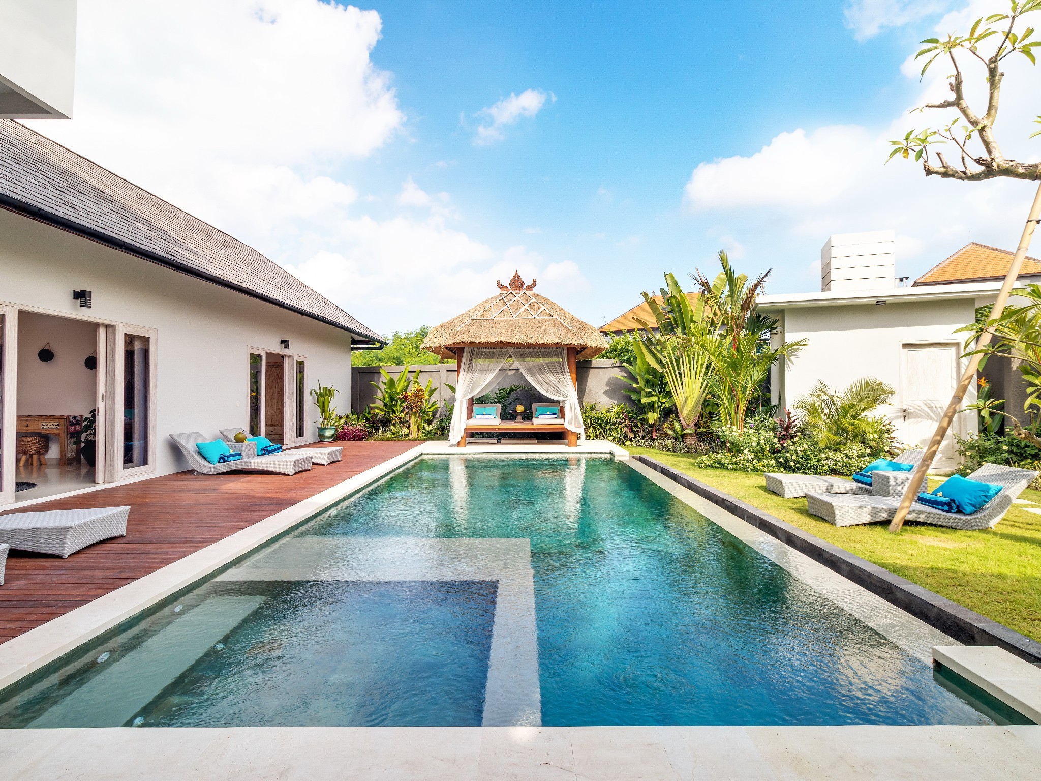 Just a short stroll from the beach and less than 1km from the vibrant hubs of Seminyak and Canggu, this hidden gem offers a serene retreat under the tropical Balinese sky.