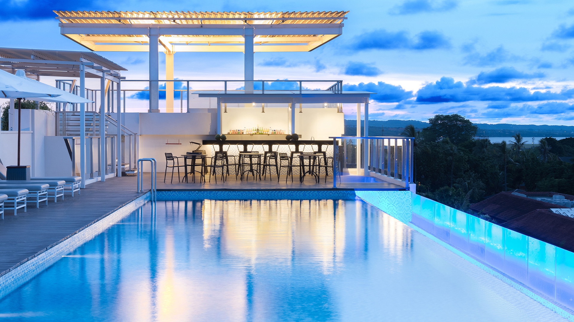 - Rooftop infinity pool with bar