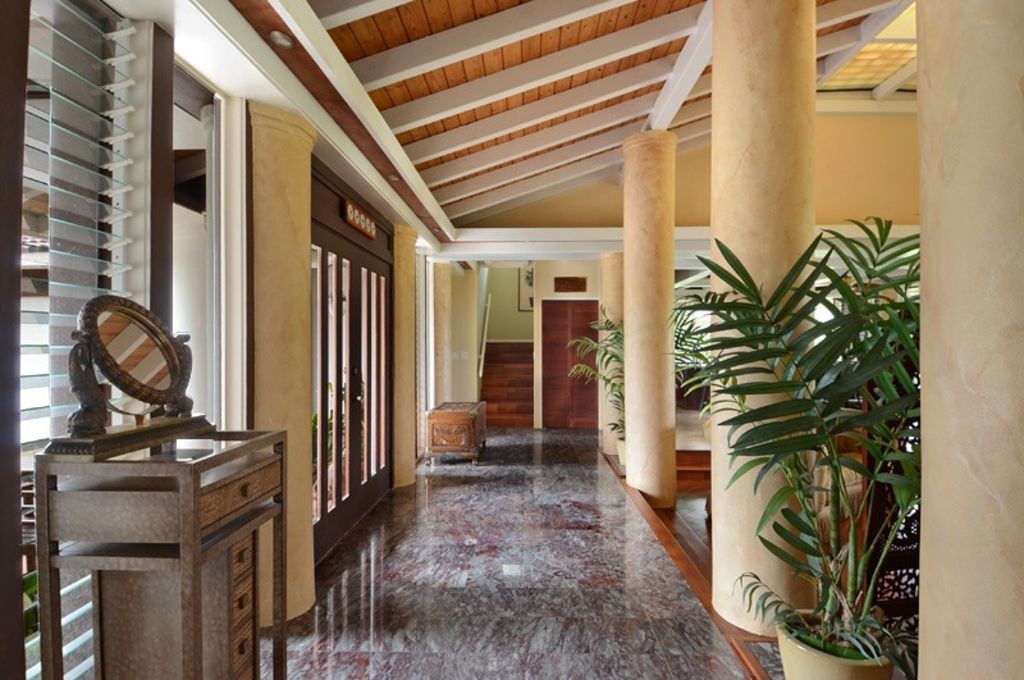 Experience the grandeur of KuKilakila, a luxurious abode inspired by the architectural genius of Frank Lloyd Wright. The spacious great room, with its tropical views and 60-inch plasma TV, is perfect for gatherings, while the gourmet kitchen, complete with a Jenn-Air refrigerator and Fisher-Paykel dual-drawer dishwasher, is a culinary enthusiast’s dream.
