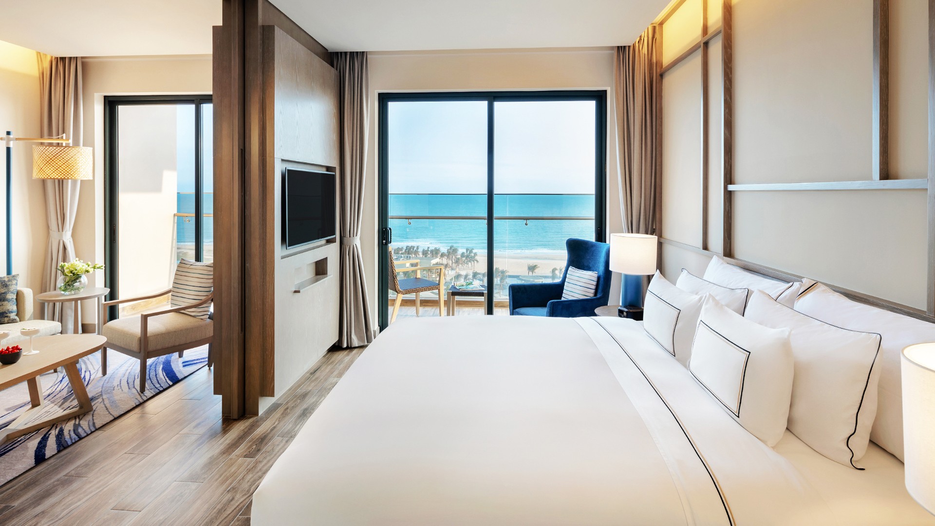 Bask in the modern luxury of your ocean-view room, swanky suite or lavish villa, all complete with immaculate design touches and contemporary furnishings. Beyond the comfort of your private abode, make the most of the resort’s dining venues, including the beautifully designed Muoi restaurant, serving up signature Vietnamese dishes, trendy Sasa offering sumptuous Asian street food and Breeza Beach Club, complete with seaside Mediterranean fare, refreshing tipples, live music and laidback vibes. For a healthy snack, smoothie and peaceful lake views, Elyxr Café is the place.