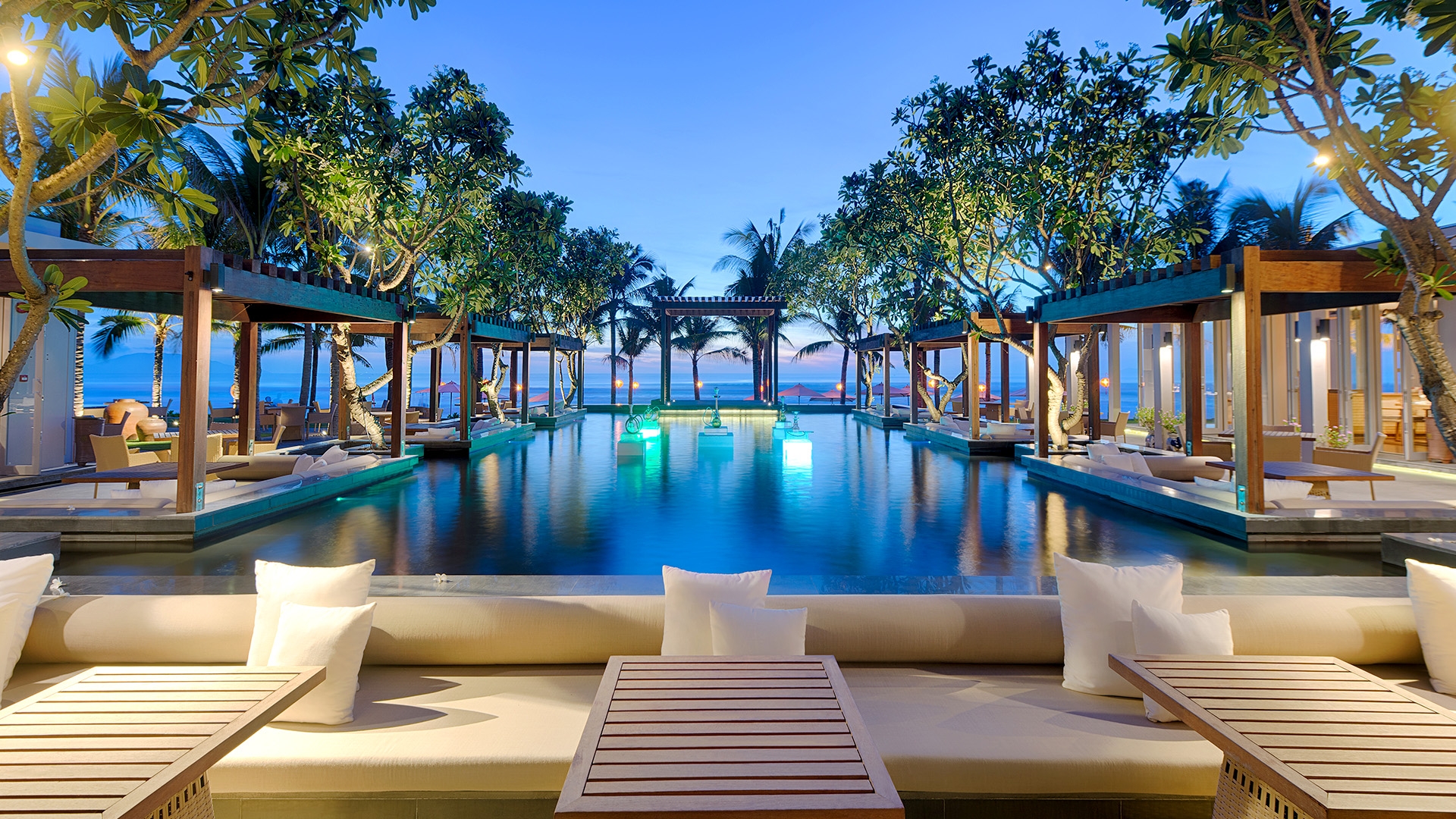Naman Retreat enjoys an enviable location on the edge of Non Nuoc Beach’s world-famous white sands and crystalline waters, within easy reach of the world-famous UNESCO World Heritage town of Hoi An. The retreat is located approximately a 30-minute drive from Da Nang International Airport (DAD). Airport transfers are included in your package, please see the Fine Print for details.