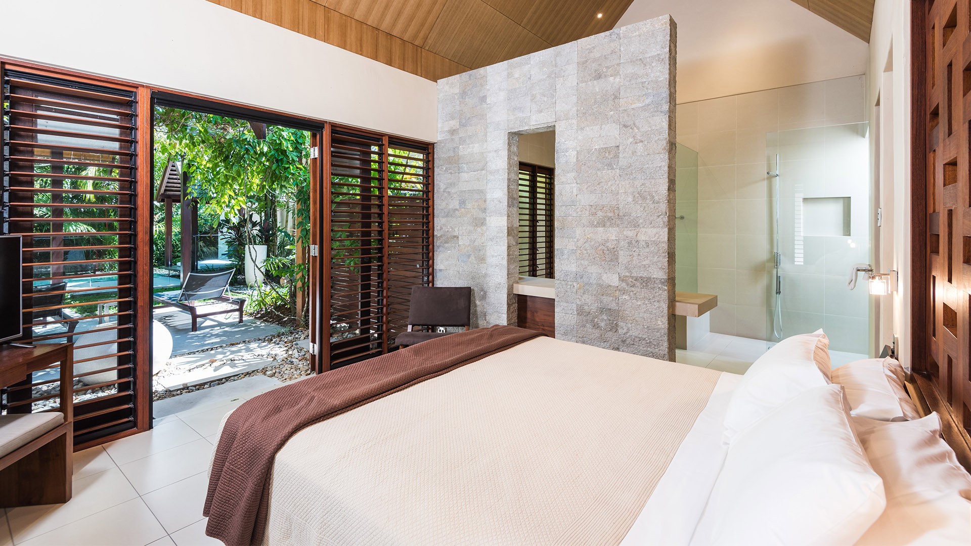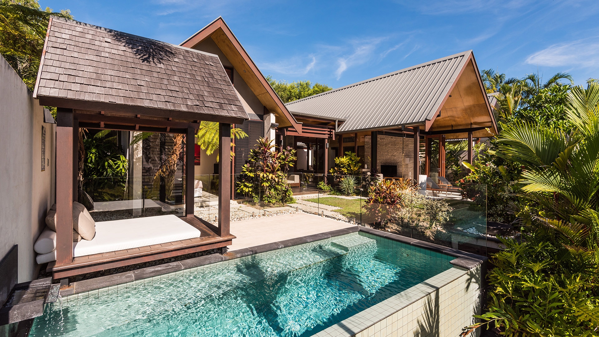 Welcome to your home away from home, the** fully self-contained One-Bedroom Villa**, for two guests. Featuring a** private plunge pool**, fully-equipped kitchen and laundry, a veranda with outdoor setting, lounge and dining area, satellite TV, barbecue and much more, you will really feel like at home. Enjoy beautiful views over the rainforest or take in wide-open vistas spilling out to lagoons and fragrant tropical gardens. A complimentary bottle of wine will be waiting for you in your room, so you can toast to the start of your tropical escape.