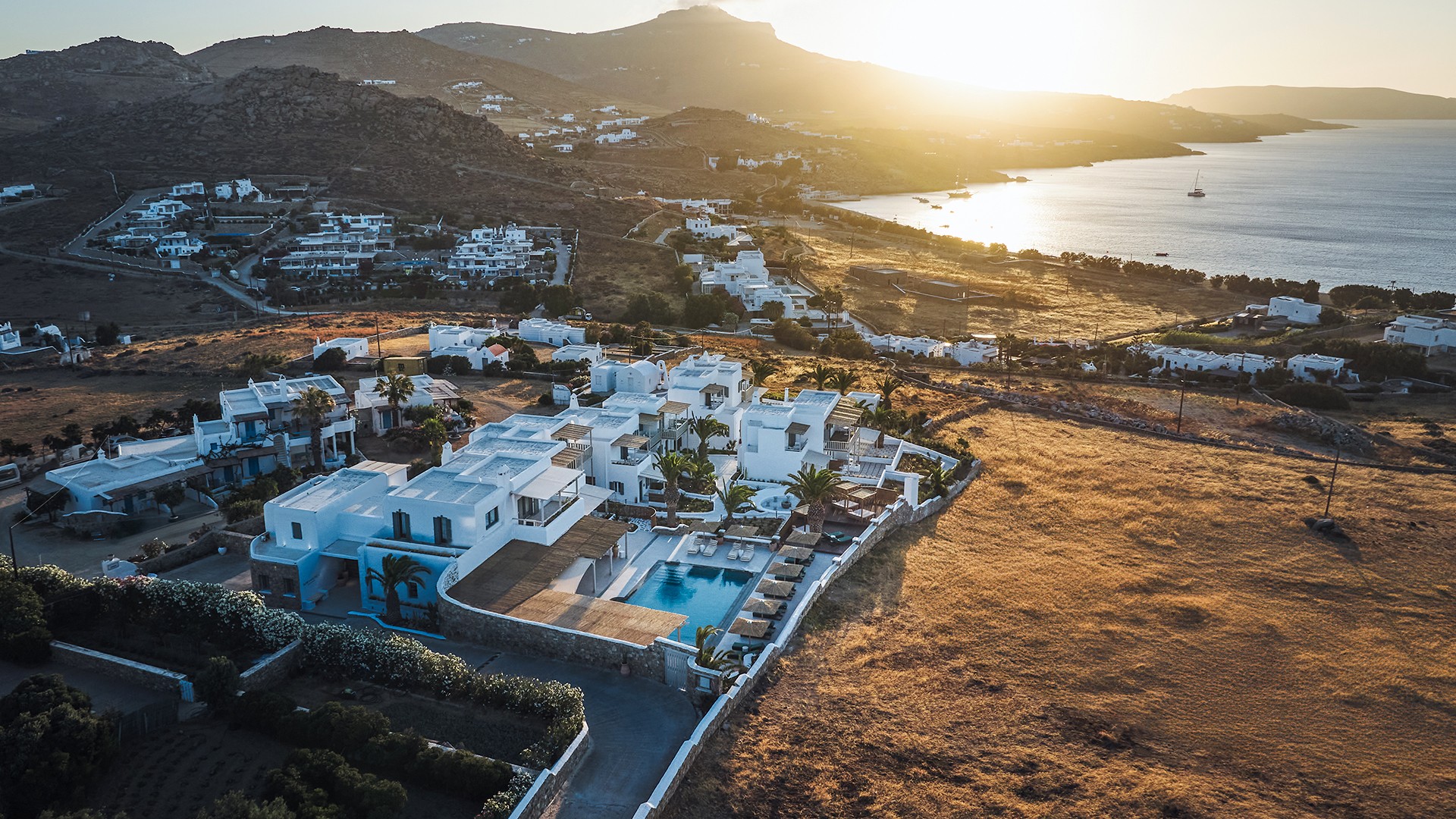 The hotel is approximately a 20-minute drive from Mykonos International Airport (JMK). Airport transfers are not included in your package, please plan accordingly.