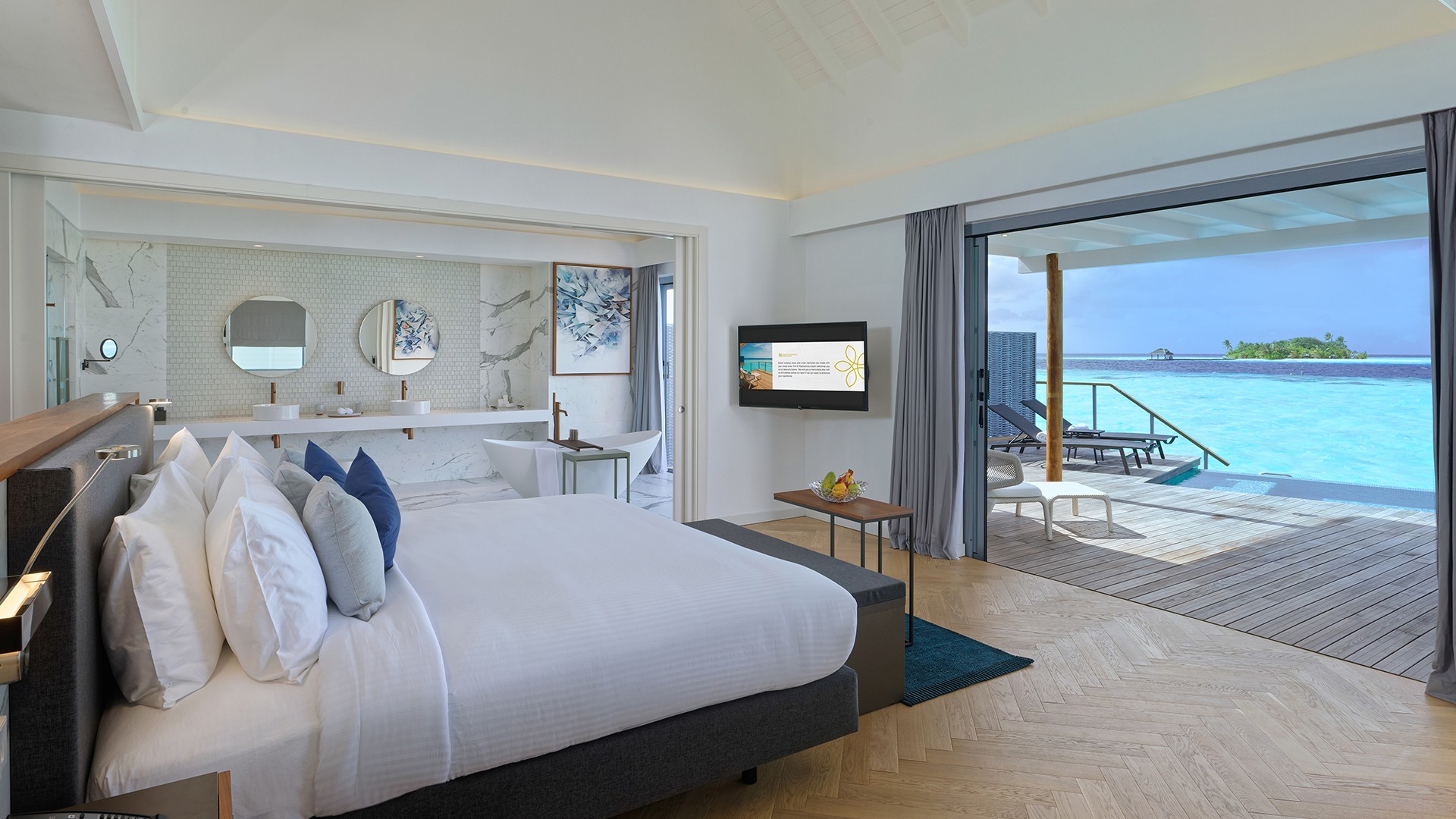 The hotel is located approximately a 25-minute domestic seaplane flight from Malé’s Velana International Airport (MLE). Return domestic seaplane transfers are included in your package.