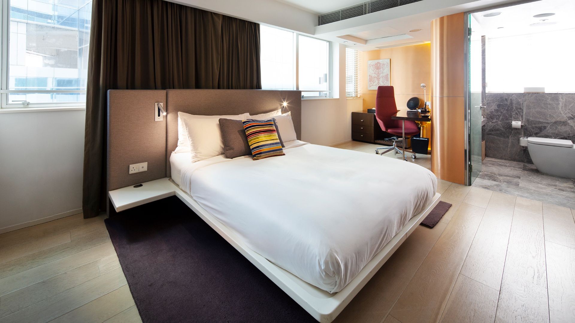 Ovolo Central offers a convenient location in the heart of the Central district, at the crossroads of Hong Kong’s famed nightlife and dining districts – Lan Kwai Fong and SoHo. Find yourself just moments from Victoria Harbour and Statue Square, with high-end shopping at the nearby Prince’s Building and Alexandra House, as well as fine dining options only steps away. The hotel is located approximately a 35-minute drive from Hong Kong International Airport (HKG). Airport transfers are not included in your package, please plan accordingly.
