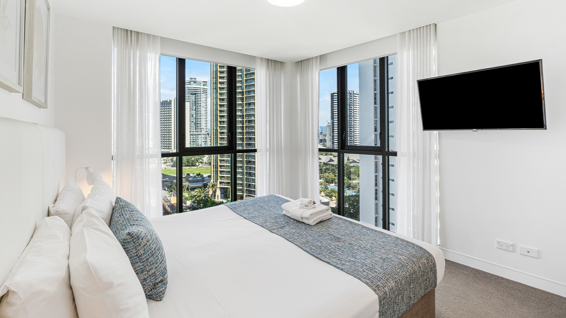 Rhapsody Resort towers above Surfers Paradise, close to the iconic Main Beach and the buzz of Cavill Avenue. The resort is located approximately a 35-minute drive from Gold Coast Airport (OOL). Your stay includes one free parking space per package. Airport transfers are not included in your package, please plan accordingly.