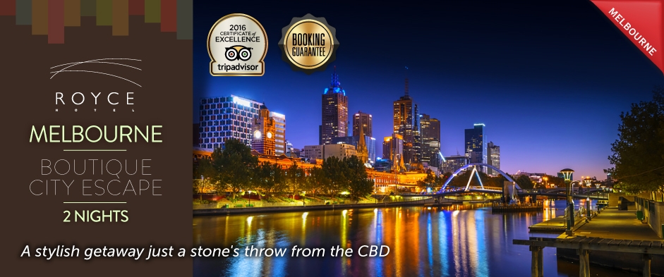 ![Royce Hotel Melbourne [183401] Indulgent Inner-City Getaway at Melbourne's Iconic Royce Hotel logo](https://images.luxuryescapes.com/fl_progressive,q_auto:eco,c_scale,h_75,dpr_2.0/Flag_of_Placeholder.svg_kn8o9f.png)