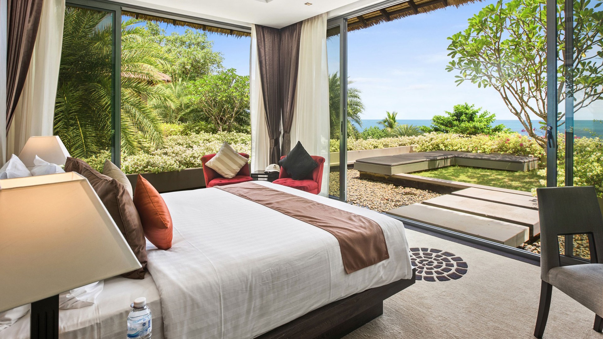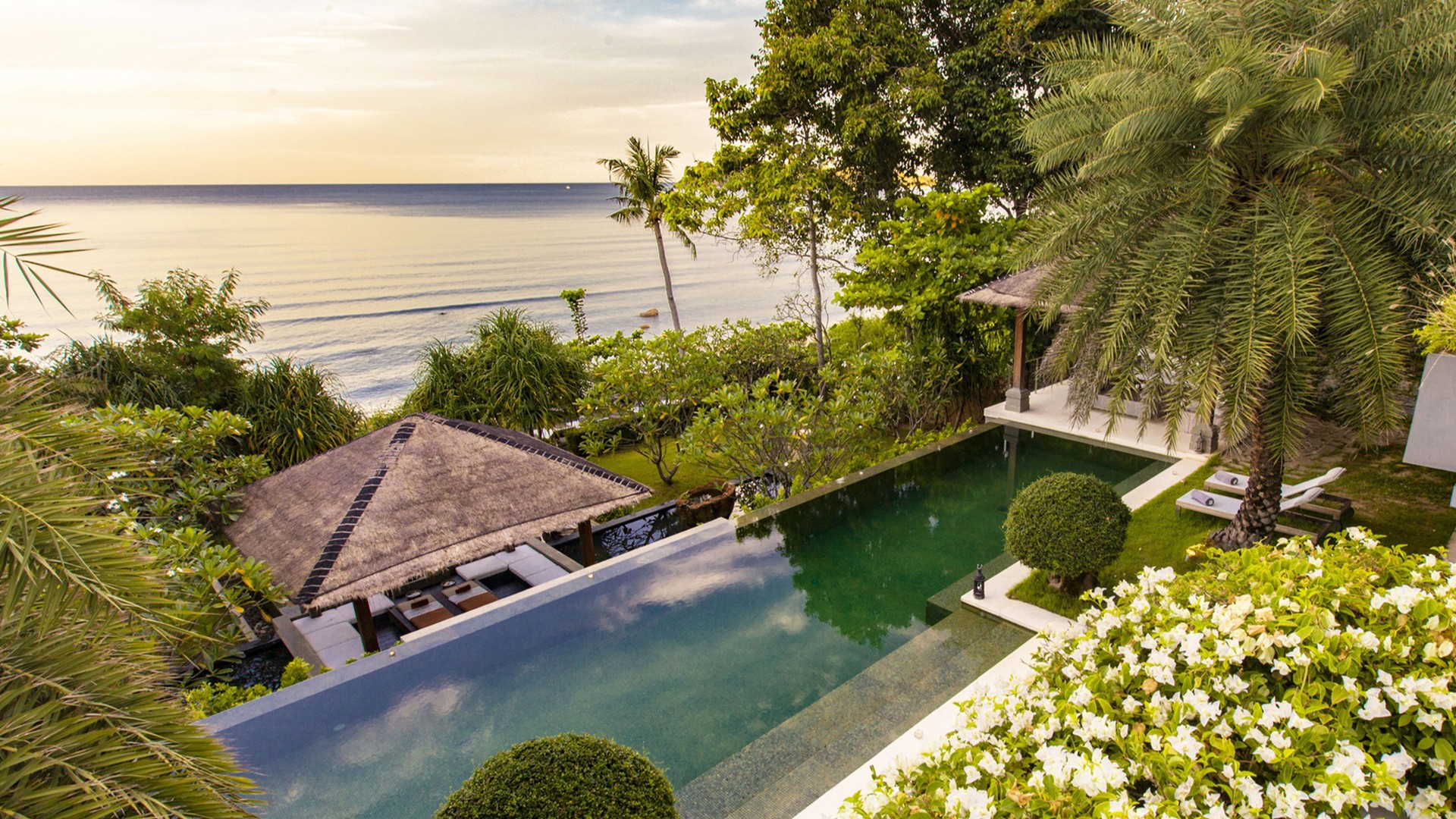 Sangsuri Estate is surrounded by beautiful, landscaped gardens on the north-east coast of Thailand’s heavenly Koh Samui. The villa is directly next to the beach, giving you easy access to the soft sand and warm waters of Rock Beach, where you can kayak, swim or enjoy a leisurely stroll. While your private pool, jacuzzi and alfresco dining areas may make it hard to leave the villa, the main shopping and dining area of Chewang is a 10-minute drive away, where you will find a bustling market and vibrant nightlife. The villa is approximately a 10-minute drive from Samui International Airport (USM). Roundtrip airport transfers are included in your package, available on request. Please plan accordingly.