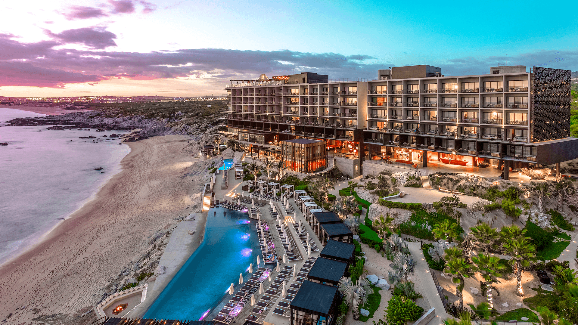 Besides the enchanting natural formations of El Arco and Lover’s Beach, The Cape, A Thompson Hotel, by Hyatt enjoys a prime position on the shores of the Baja California Peninsula. The charming waterfront neighbourhood, the Marina, is a short drive away, where top-tier seafood restaurants, luxury yachts and a buzzing nightlife await. For a change of scenery, the lively city of La Paz is just two hours away. The hotel is located approximately an hour’s drive from Los Cabos International Airport (SJD). Airport transfers are not included in your package, please plan accordingly.