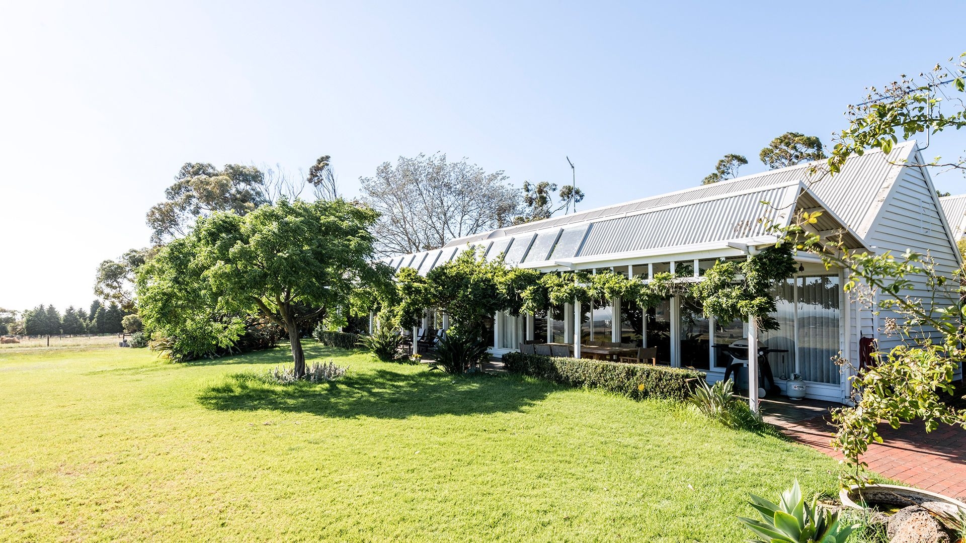 The White Shack is located on Victoria’s Bellarine Peninsula, moments from some of the Bellarine’s best wineries, including Jack Rabbit, Terindah and Scotchman’s Hill, with Bellarine Distillery and its cellar door just down the road. Sprawled across a one-hectare private estate, the property sits approx. a 90-minute drive from Melbourne CBD and the Melbourne International Airport (MEL), and a 20-minute drive from Geelong. Airport transfers are not included in your package, please plan accordingly.