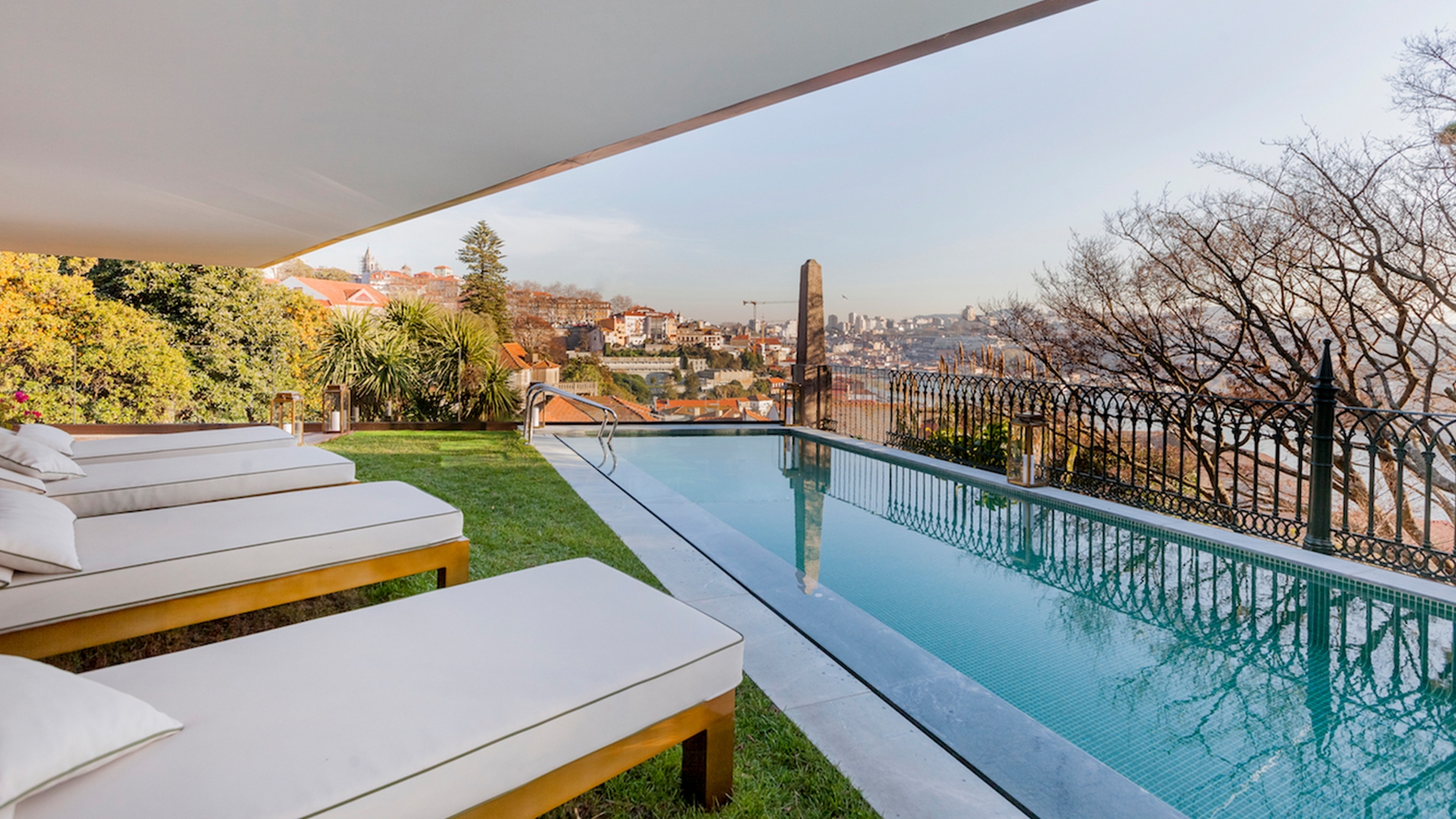 A rooftop pool sits at its crown, perched high above the city and peeking over rooftops to the Douro River below. Enjoy a poolside tipple, or visit Digby Restaurant for rich Portuguese cuisine and a signature cocktail, featuring bouquets strung from the ceiling.