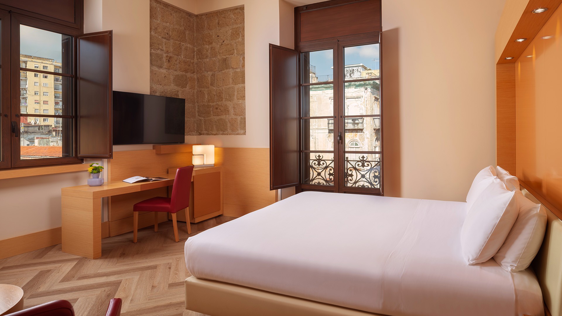 Located in the heart of Garibaldi Square, moments from Napoli Centrale train station and a short walk to the city’s most treasured attractions, UNA Hotels Napoli makes it easy to enjoy everything authentic Neapolitan life has to offer. The hotel is located approximately a 15-minute drive from Naples International Airport (NAP). Airport transfers are not included in your package, please plan accordingly.