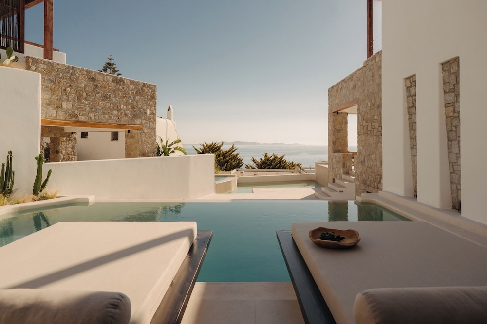 Immerse yourself in the glamour of the Greek islands with an idyllic stay at Bard De Sol Mykonos, a beacon of Mediterranean luxury. Moments from the Agios Stefanos Beach, this hotel offers a unique blend of Grecian charm and modern sophistication. Sample myriad flavours at Sol Bar & Restaurant, or venture out to explore the vibrant nightlife of Mykonos Town. Relax in the hotel’s sauna therapy room, or take a dip in the infinity pool, offering breathtaking Aegean Sea views.