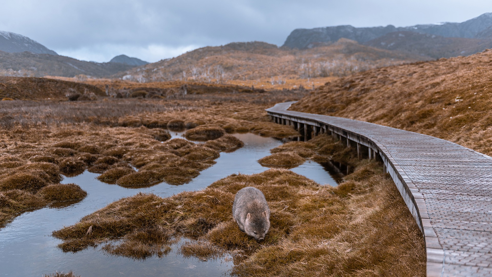 Your first hike begins at Cradle Valley Boardwalk. Keep an eye out for the region’s cherished wildlife, including spiked echidnas and Tasmanian pademelons. Your expert local guides will ensure you don’t miss a thing. This easy walk follows the Dove River, showcasing native flora, including the Tasmanian Waratah in early summer. At Ronny Creek, search for wombats in the buttongrass plains before visiting historic Waldheim Chalet, built by pioneer Gustav Weindorfer.