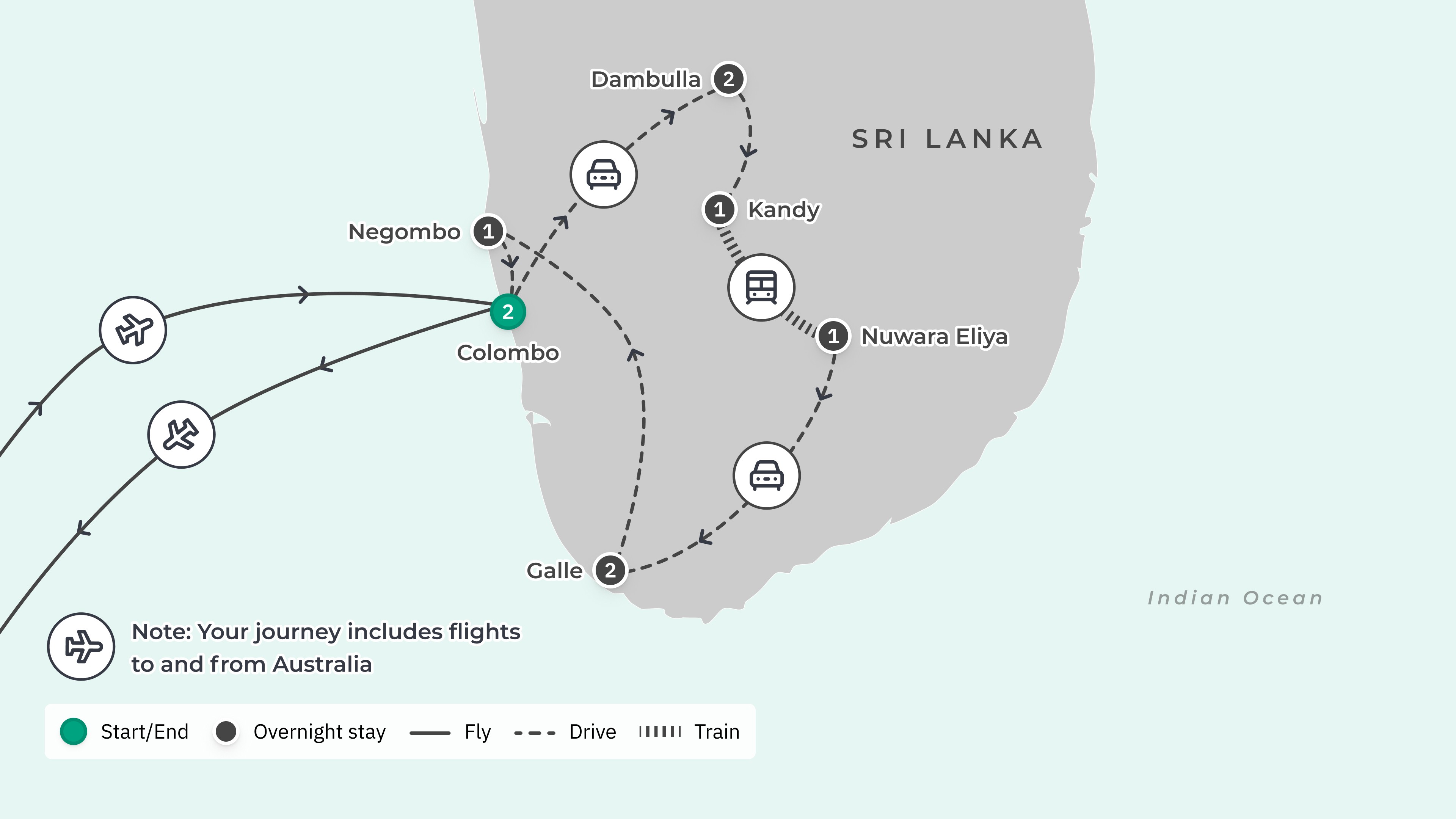 Bid farewell to your fellow travellers as your once-in-a-lifetime culinary journey through Sri Lanka comes to a close. After checkout, you’ll be transferred to Bandaranaike International Airport (CMB) for your onwards journey.