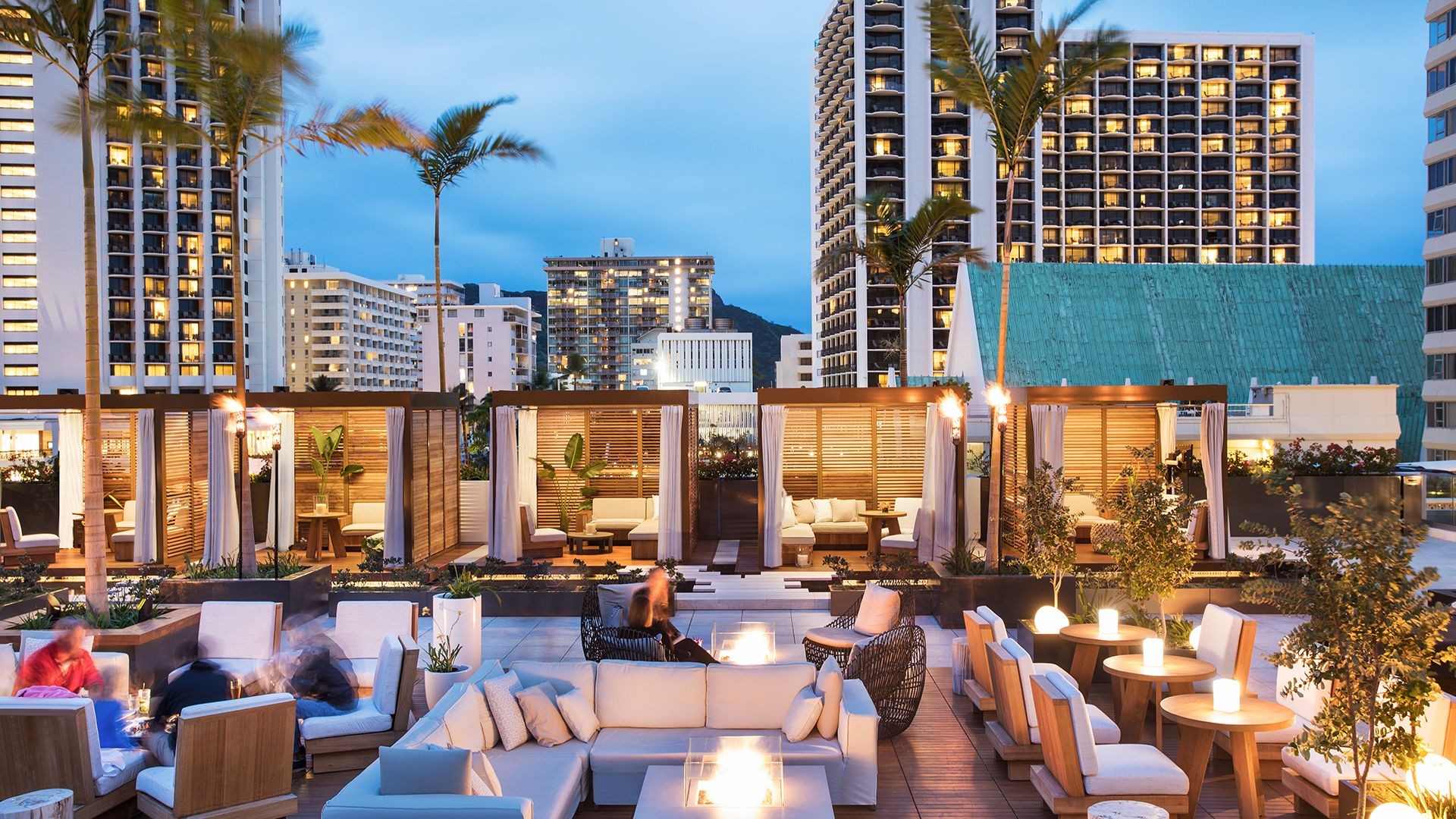 There’s no doubting ‘Alohilani Resort Waikiki Beach’s tropical island setting: a two-story, 280,000-gallon oceanarium is the star attraction of the open-air lobby, brimming with reef fish. The aquatic theme continues on the fifth floor, home to one of Waikiki’s most Instagrammable pools, complete with a bar, teak loungers, and private cabanas overlooking the beach. As the sun sets, the space is transformed with lanterns and live music, setting the scene for a night of drinks and beautiful bites from Swell Restaurant. Or, you may choose to head to Morimoto Asia or Momosan, the resort’s restaurants led by world-famous ‘Iron Chef’ Masaharu Morimoto. Families will find plenty to enjoy too including a shallow paddling pool for the little ones, and twice-daily tank talks by the oceanarium.