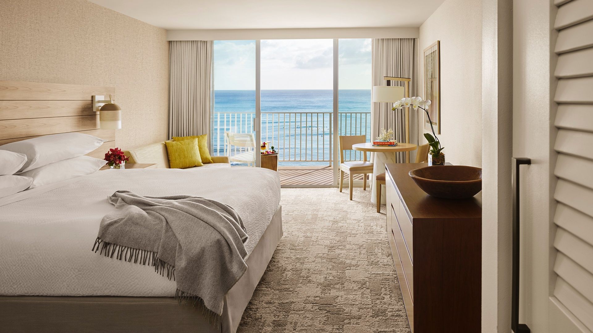 Find serenity in simplicity in this artfully designed room, where pared-back wooden furniture and a private balcony offer a uniquely relaxing stay