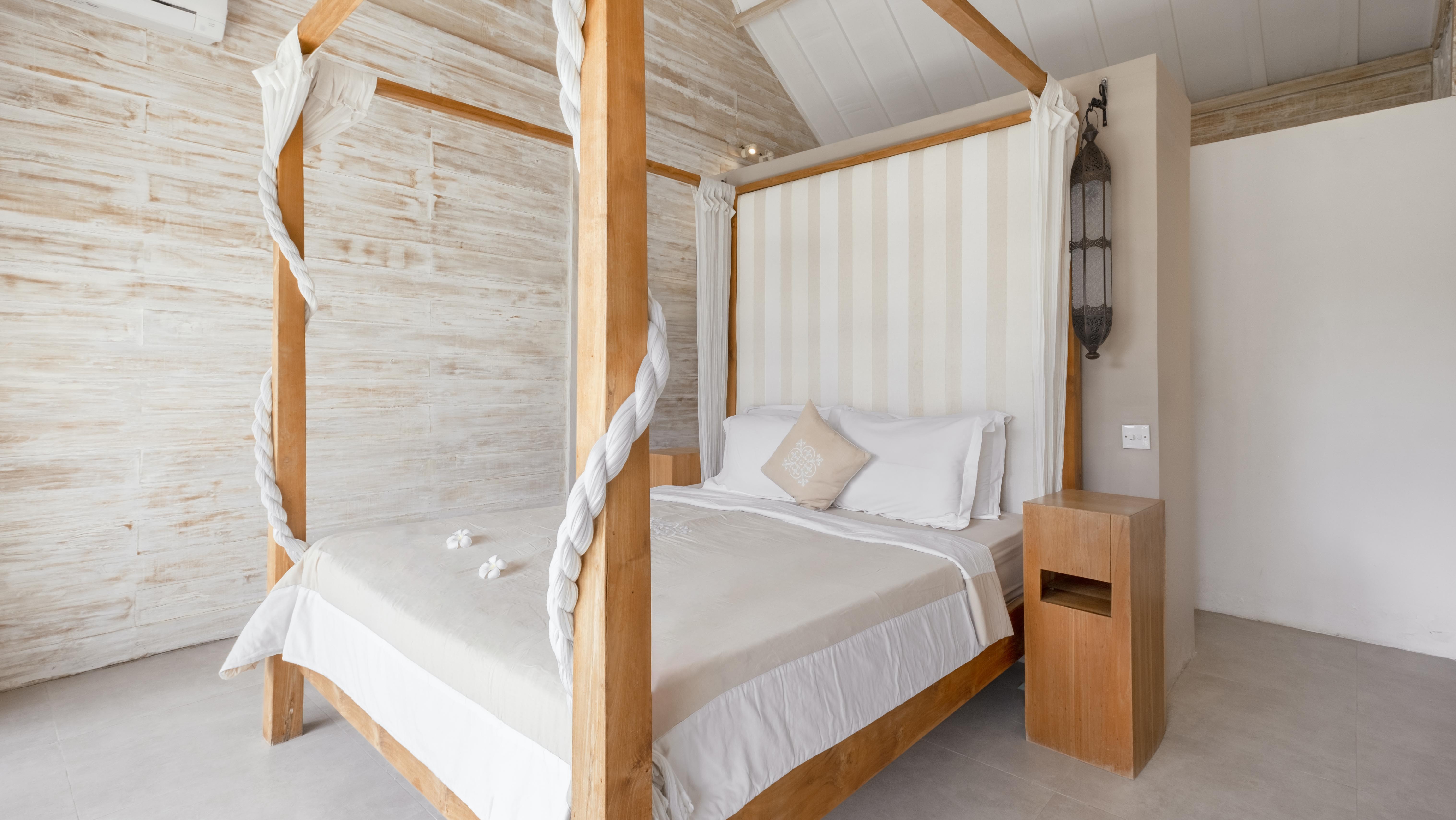 Moroccan-style lamps add a touch of exotic elegance, while the ensuite bathrooms feature monsoon showers and premium amenities. Wake up to stunning garden and pool views, and start your day with a refreshing swim or a leisurely coffee on the verandah.