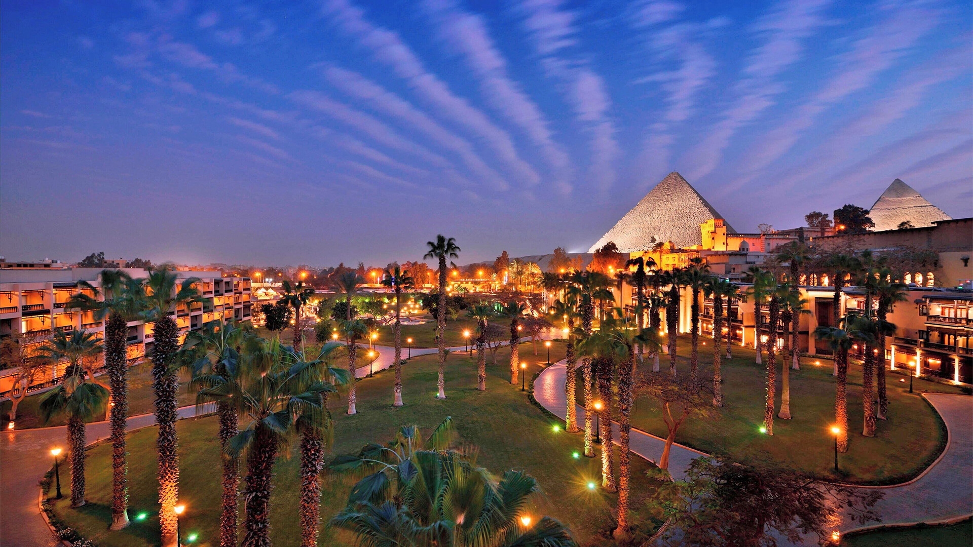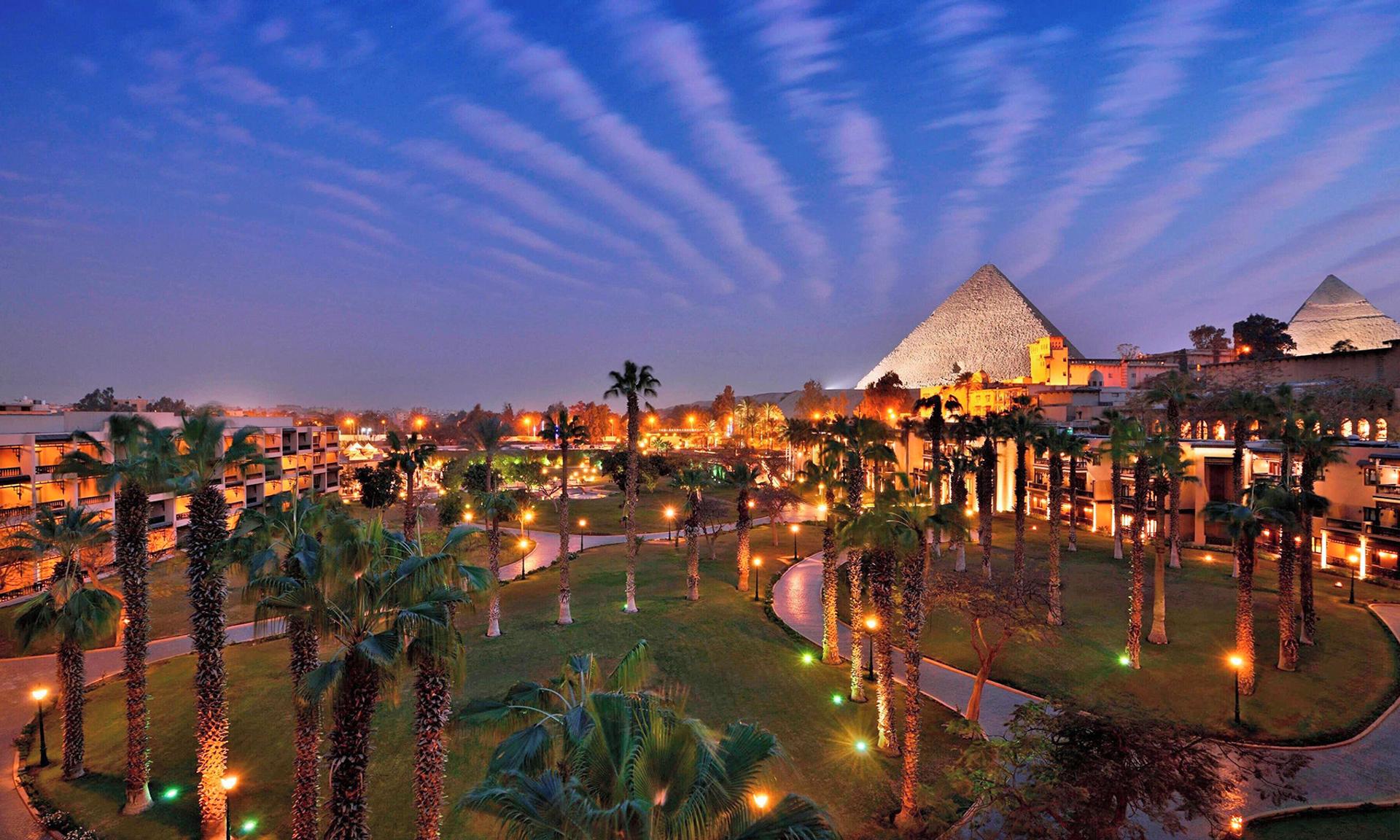 • Two nights staying at five-star Marriott Mena House Cairo, with partial pyramid views