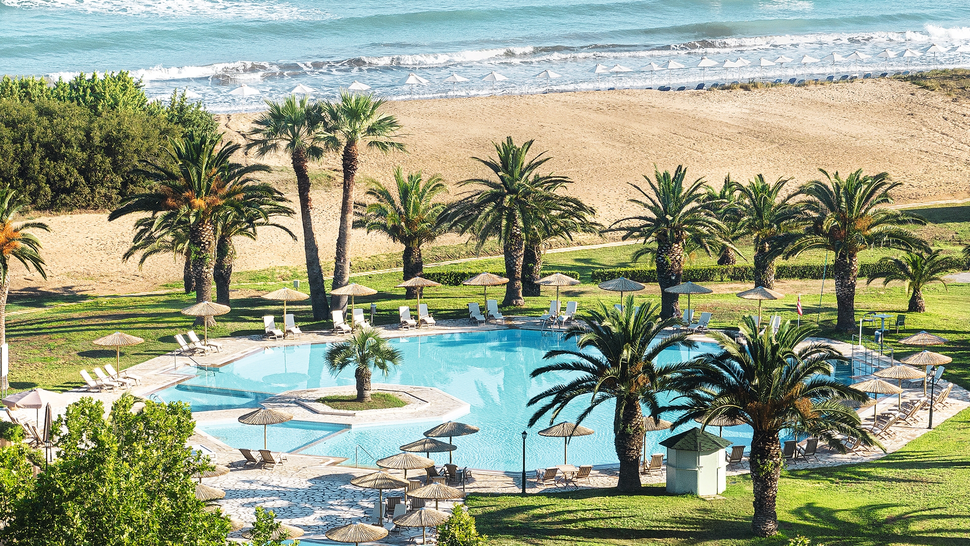 Grecotel LuxMe Costa Botanica is a tranquil, 350,000sqm oasis in Corfu, perched on the shoreline of the crystal-clear Ionian Sea and boasting spectacular gardens, glistening pools and a thrilling aqua park. Perfect for the flop-and-drop style vacation, spend your days exploring local beaches, the Lake of Lillies, enjoying a game of tennis or luxuriating in the world-class spa. Hop on a scooter and enjoy the 20-minute drive to the spectacular Nymfes Waterfall and quaint local villages dotted across the island. The hotel is approximately a 60-minute drive from Corfu International Airport (CFU). Transfers are not included in your package. Please plan accordingly.