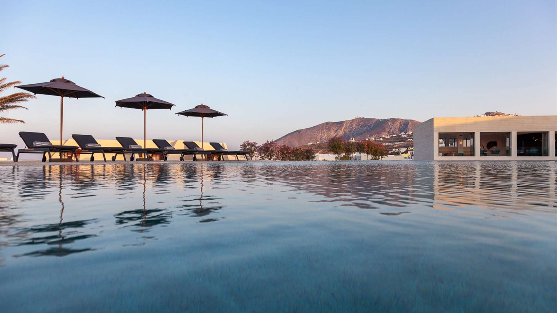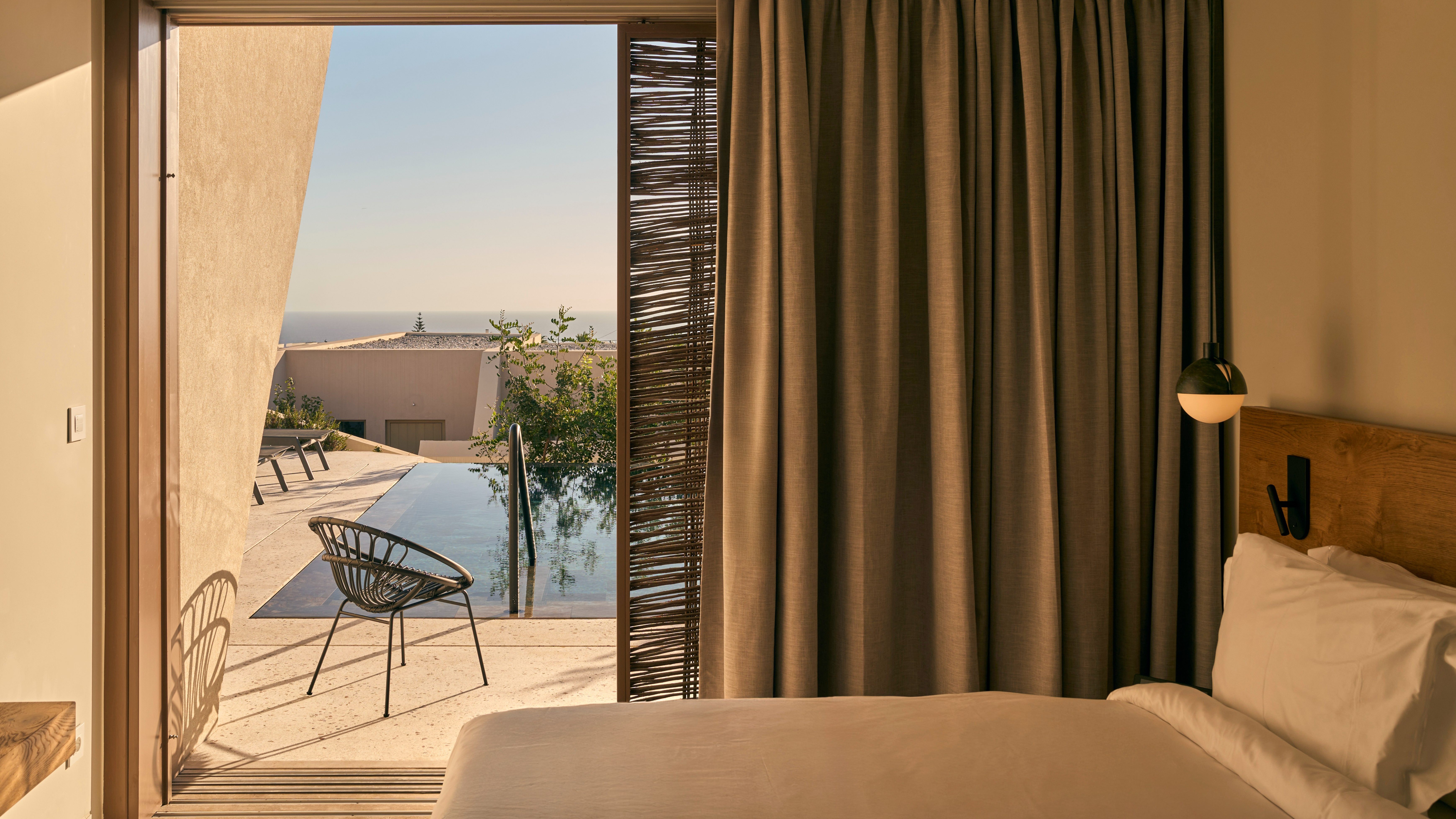 NOŪS Santorini sits at the heart of one of the Aegean’s most dramatic islands, offering unobstructed caldera panoramas. The volcanic beaches of Perissa and Red Beach and the white-washed towns of Oia and Fira all lie under 30-minutes away by car. The hotel is located approximately a 5-minute drive from Santorini Airport (JTR). Airport transfers are not included in your package, please plan accordingly.