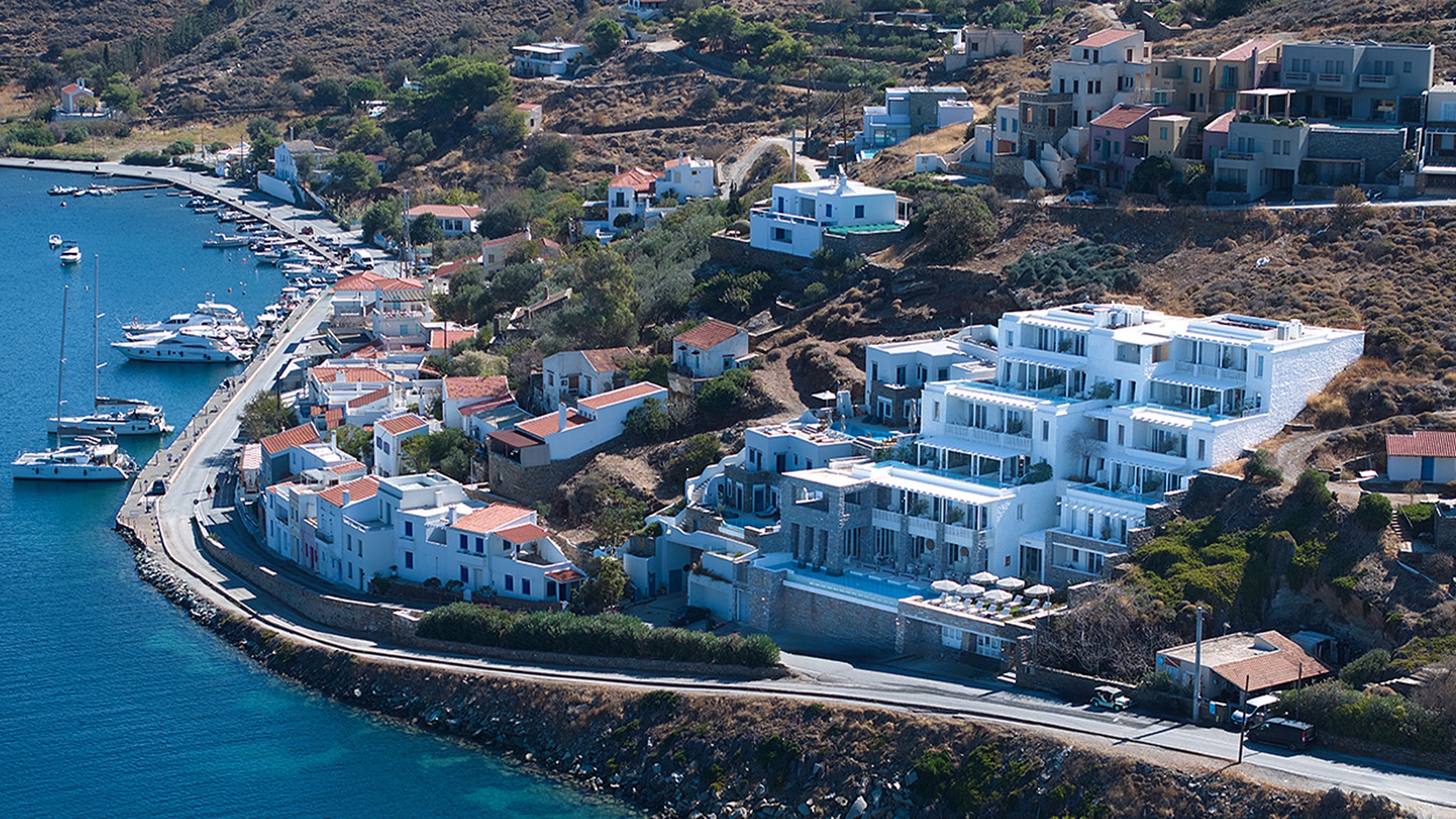 Ydor Hotel & Spa on Kea Island is ideally situated, offering easy access to the island’s beautiful beaches and charming villages. The hotel is a short drive from the ancient city of Ioulis and the Archaeological Museum of Kea. Athens International Airport (ATH) is a one-hour ferry ride and a 40-minute drive away. Airport and ferry transfers are not included in your package, please plan accordingly.