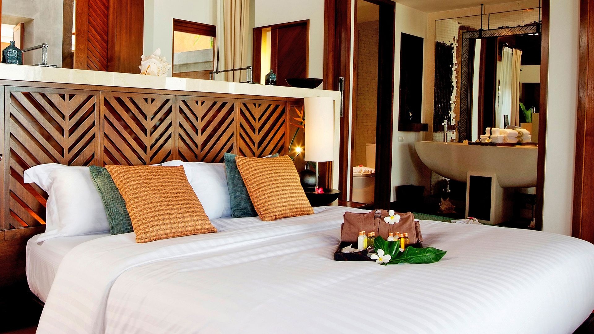 Retreat in comfort in this classic Thai-style room, with dark wood furnishings, warm earthy tones and a private balcony