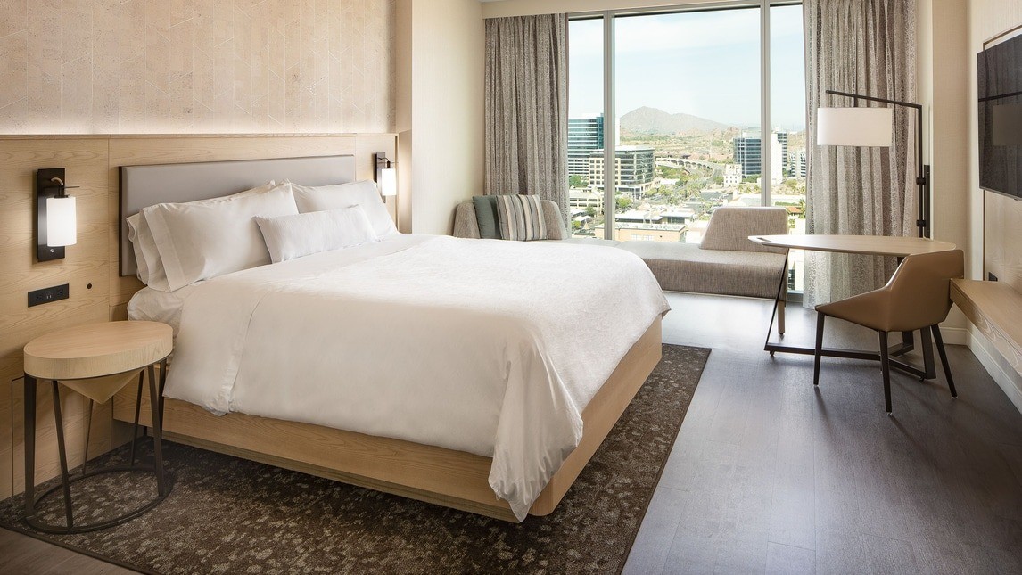 The Westin Tempe sits in the heart of downtown Tempe, steps from Mill Avenue and the lively dining, nightlife and entertainment scene that defines the city. Arizona State University is right next door, and Tempe Town Lake and A Mountain are less than 30 minutes’ walk. Phoenix Sky Harbor International Airport (PHX) is approximately 10 minutes’ drive away. Airport transfers are not included in your package, please plan accordingly.
