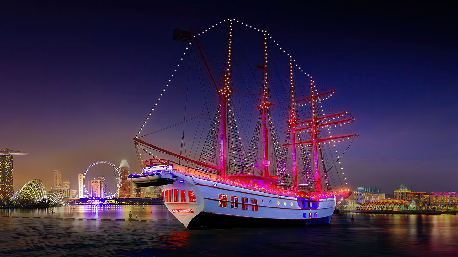 Set sail on a breathtaking adventure aboard the award-winning luxury yacht, Royal Albatross. This magnificent 47m, four-masted superyacht masterfully blends modern innovation with the timeless romance of classic sailing. Whether you’re on a sunset sail or a dazzling city lights cruise, every moment on the Royal Albatross is pure magic. Feel the wind in your hair, enjoy free-flow drinks and admire Sentosa Island from a new perspective on this one-of-a-kind experience!