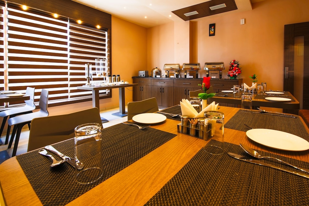 Enjoy a meal at the restaurant, or stay in and take advantage of the hotel’s room service (during limited hours).