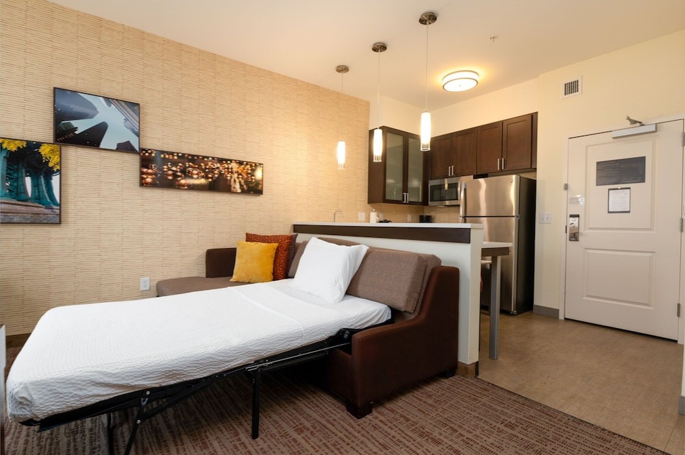 Make yourself at home in one of the 127 air-conditioned rooms featuring kitchens with refrigerators and stovetops. 40-inch Smart televisions with digital programming provide entertainment, while wireless internet access (surcharge) keeps you connected. Conveniences include desks and microwaves, as well as phones with free local calls.