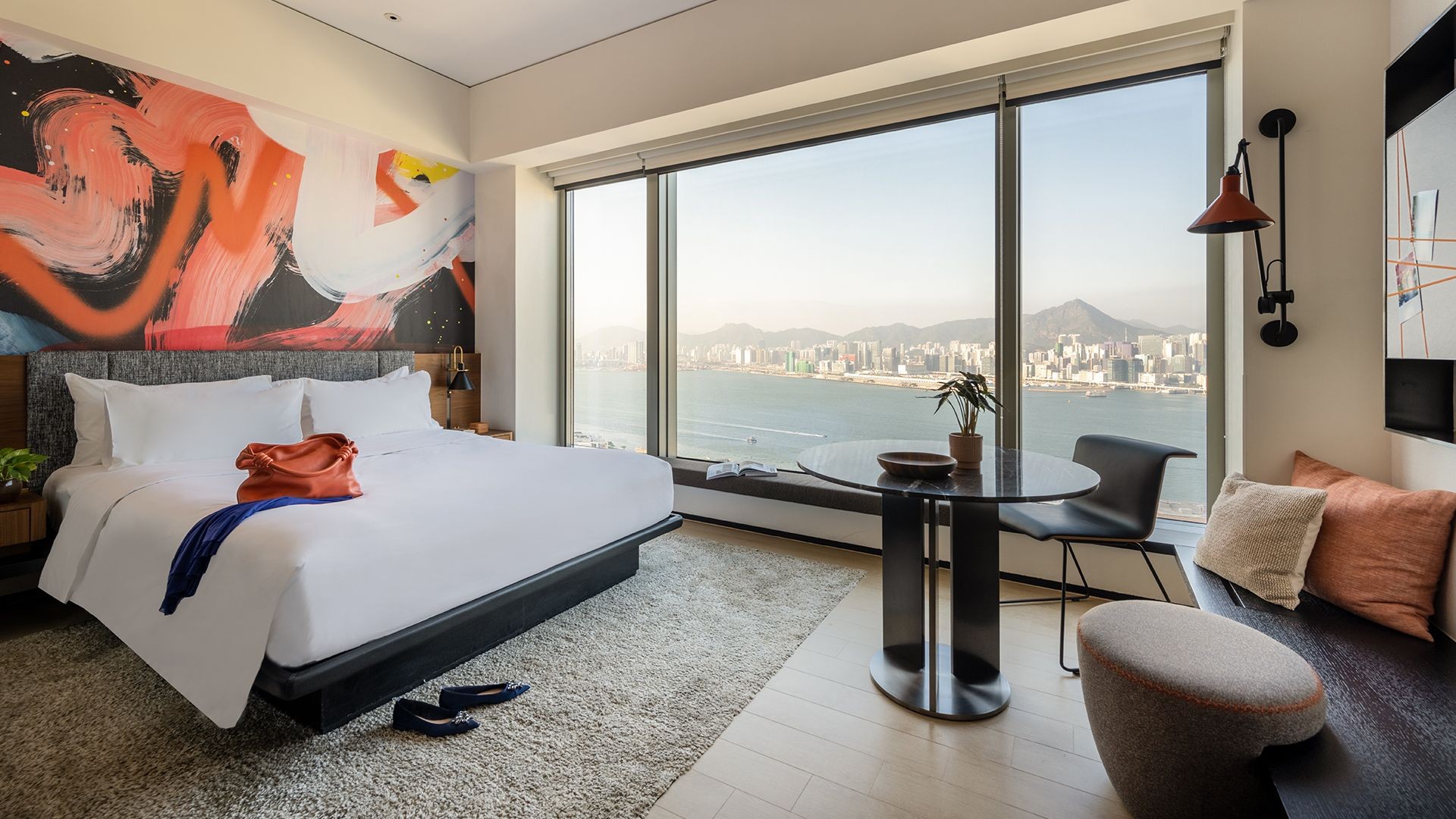 Sit above Hong Kong’s sprawling metropolis in this sleek urban oasis, with stylish modern furnishings and a warmly accented ensuite with a rainfall shower