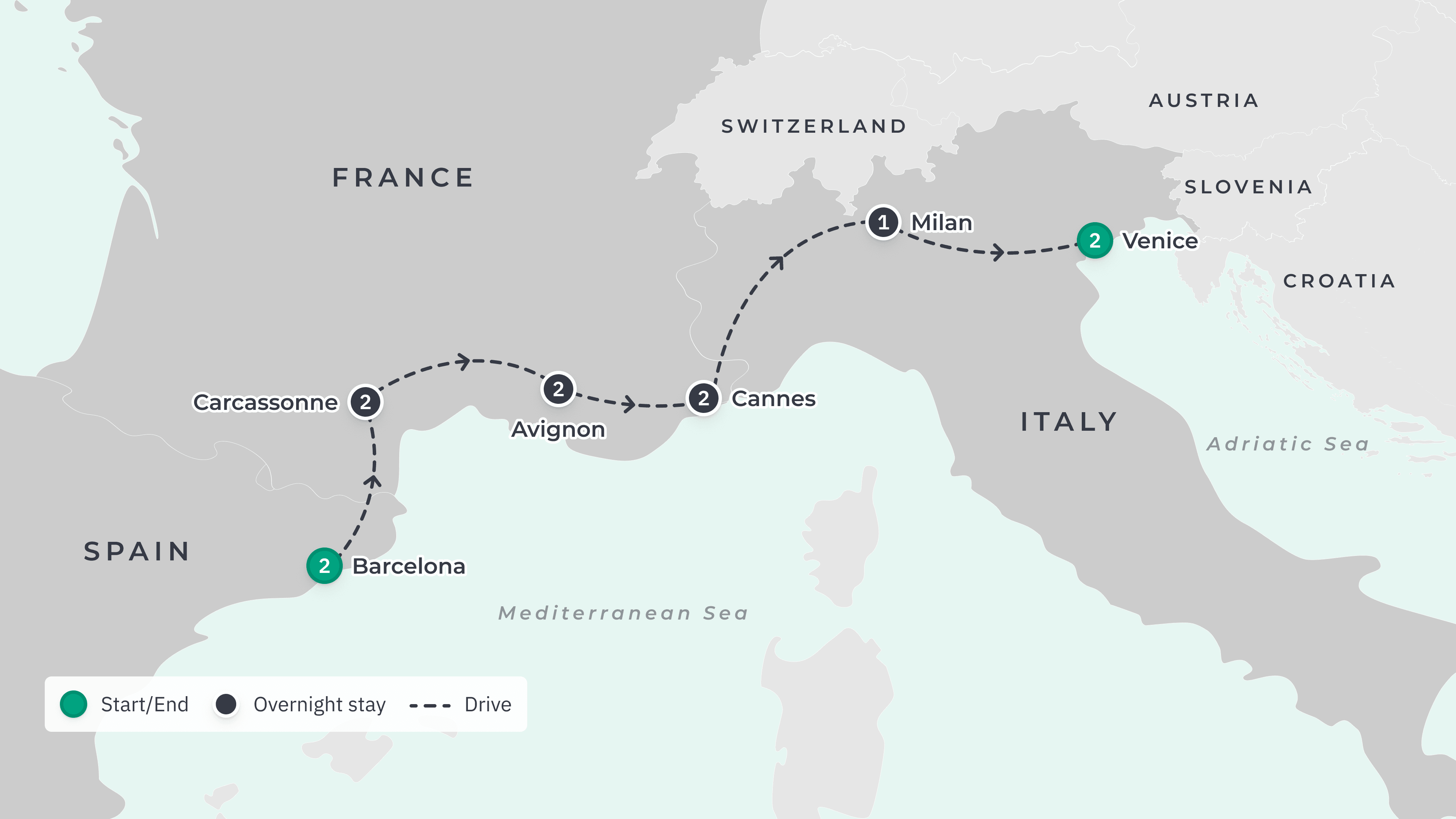Discover the shimmering waters of the French Riviera and be swept off your feet in northern Italy on this small-group tour through some of the Mediterranean’s most romantic destinations. Follow the Catalan modernist artwork of Gaudi to the soaring towers of the Sagrada Familia basilica in Barcelona. Cross the border to southern France for a full-bodied Rhone Valley wine tasting, climb Carcassonne’s World Heritage-listed citadel and unveil the secrets of perfume-making in a hands-on class on the Cote d’Azur. Welcome the flavours of Spain and Italy when you indulge in a sumptuous Catalan welcome dinner and a mouth-watering meal at a traditional ristorante in Venice. Get to know the ebb and flow of the Italian landscape as you glide across Lake Garda and drift along in a Venetian gondola.