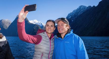 Experience Milford Sound like never before on a two-hour cruise designed for complete immersion. With limited spaces, you’ll have room to fully take in the splendour as you sail past iconic sites like Mitre Peak, Lady Bowen Falls and Stirling Falls. Feel the mist of Fairy Falls, capture stunning photos and watch for sunbathing seals or playful dolphins. Complimentary tea and coffee enhance the cosy atmosphere, whether enjoying expansive views from inside or stepping onto the open decks to breathe in the pristine alpine air.
