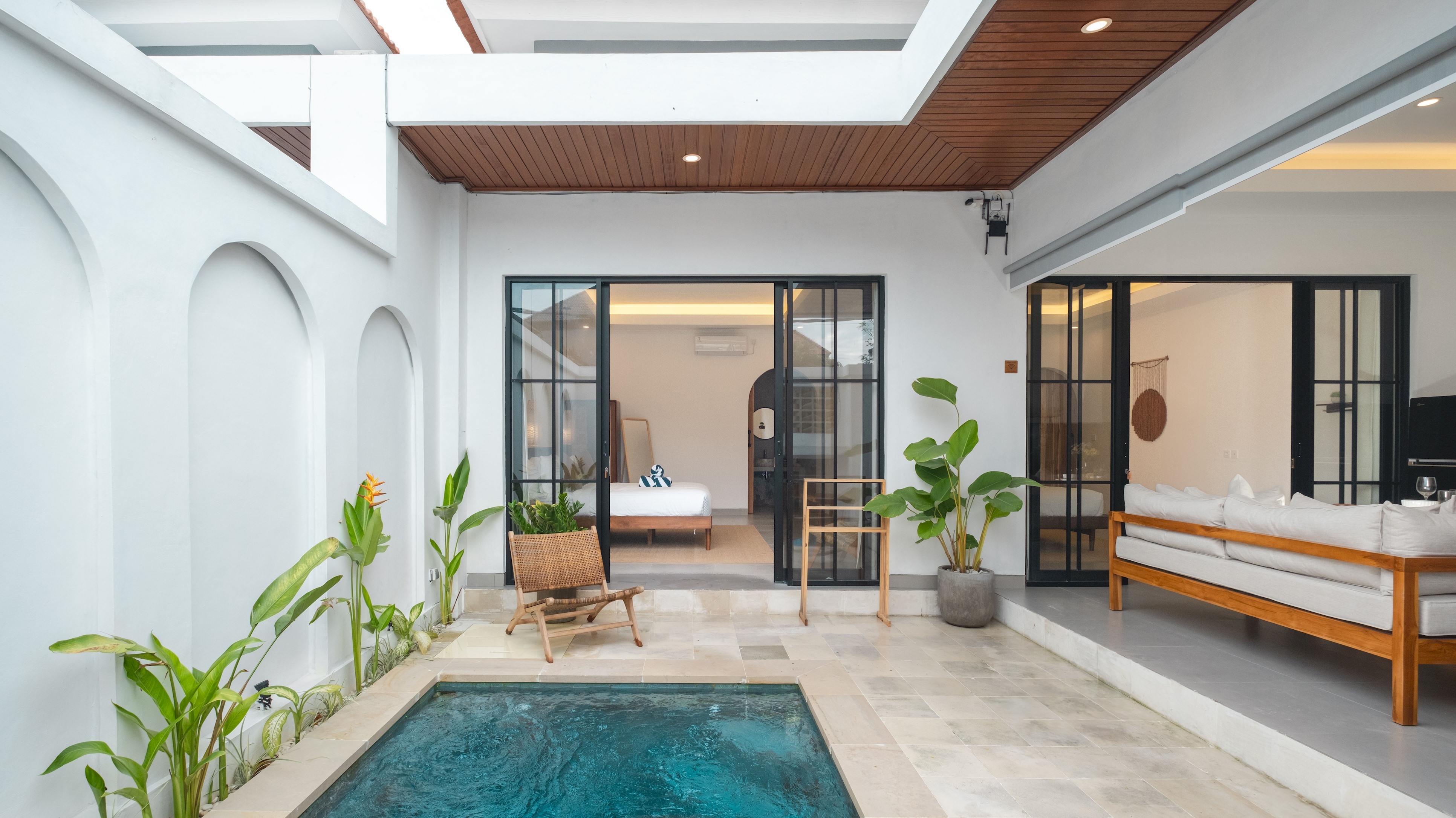 Introducing Kamila Villa 2, a tranquil oasis of modern design and tropical elegance, nestled in the heart of vibrant Seminyak. This newly-built two-bedroom villa offers the perfect blend of comfort and style, with its serene courtyard and private pool providing an idyllic setting for relaxation. Just steps away, discover a plethora of shops, restaurants and nightlife, making this the ideal base for exploring the local area.
