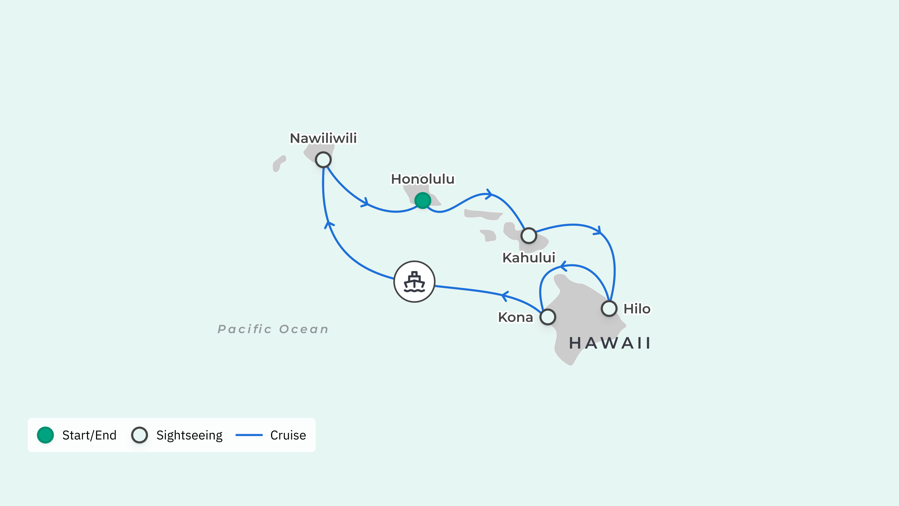 Your cruise begins and ends in Honolulu, Hawaii.