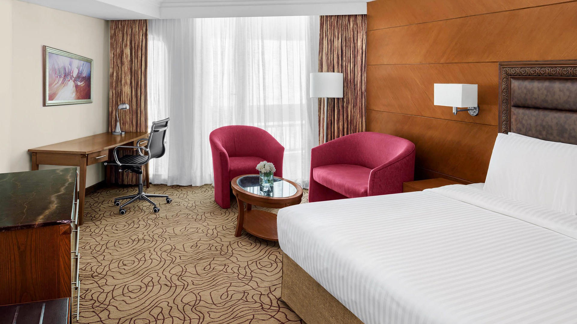 The lavish Mövenpick Hotel Karachi boasts a prime location in the culturally vibrant city of Karachi, a stone’s throw from the Mazar-e-Quaid mausoleum and a 10-minute drive from the National Museum of Pakistan. The hotel is approximately a 30-minute drive from Jinnah International Airport (KIH). Airport transfers are not included in your package, please plan accordingly.