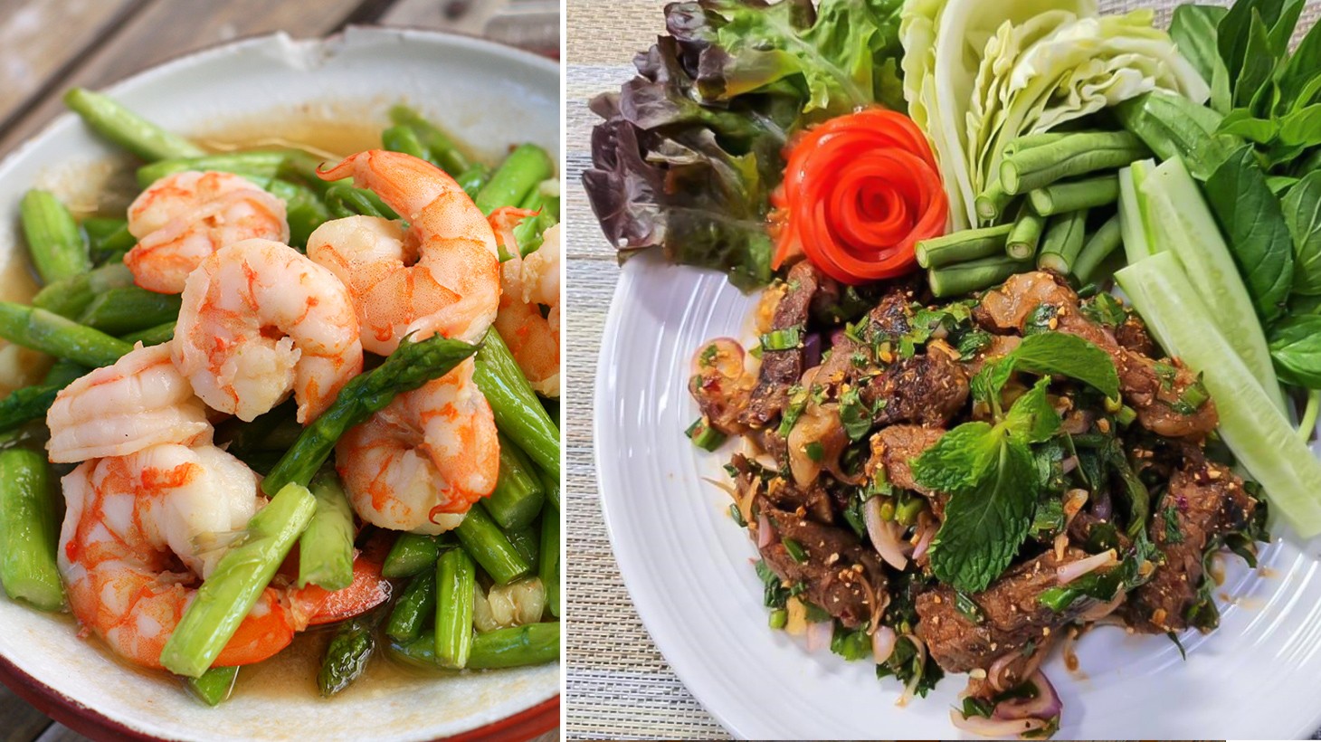 • Soups or Salads: Tom kha gai, tom yum goong, laab gai or som tam (choose one)
