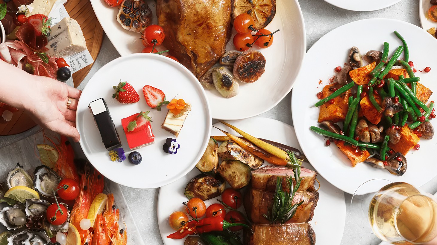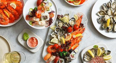 - Fresh seafood: Sydney rock oysters; Balmain bugs; blue swimmer crab; poached king prawns; wine-poached diamond clams