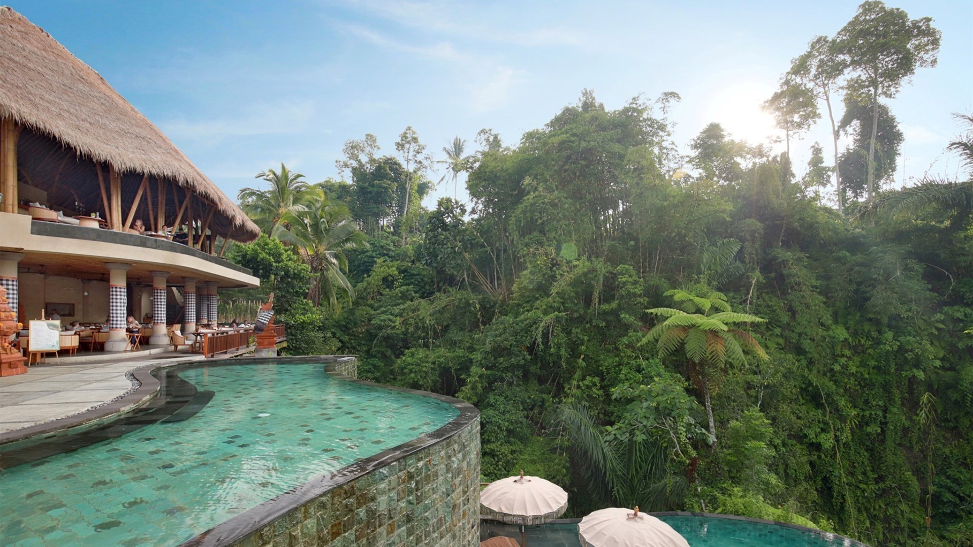 Enjoy some well-earned rest and indulge in peaceful tranquillity deep in the heart of the jungle in one of Aksari Resort Ubud’s relaxing suites. The impressive resort boasts unparalleled, sweeping views of Bali’s picturesque, lush green valleys accompanied by the finest traditional Balinese touches. Found just 25 minutes from the centre of Ubud, spend your days exploring one of Bali’s hotspots or visit the Tegalalang Rice Terraces, a much-loved attraction for tourists from all over the globe. Closer to home, embrace the air of romance found across the resort and take a dip in the cascading infinity pool perched over the jungle, offering seemingly endless views of the verdant forest.