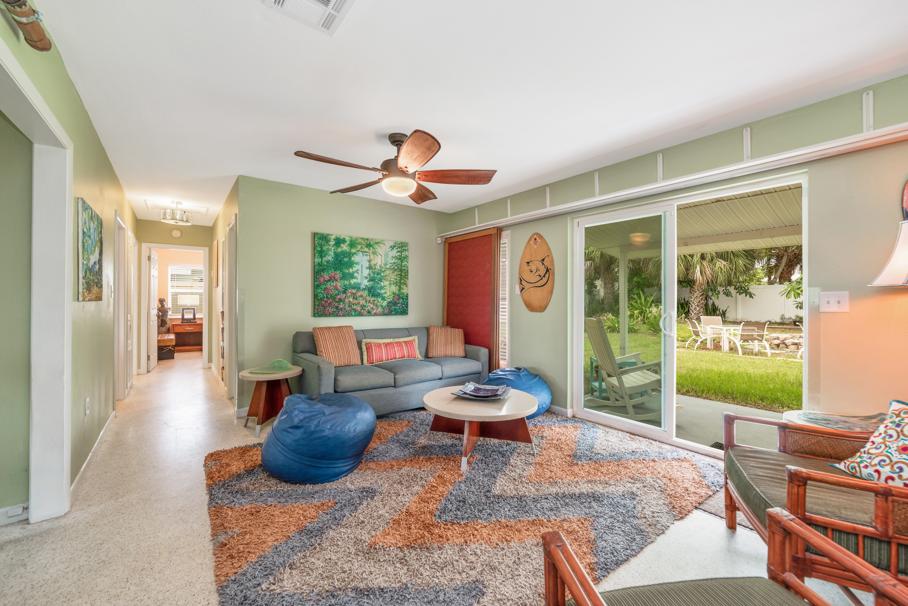 Step outside to a private backyard, complete with a fire pit, outdoor seating, and your very own charcoal BBQ. The villa is pet-friendly and features a large, fenced yard, perfect for your furry friends. For the ultimate beach experience, watch Space-X/Nasa Shuttle Launches right from the beach or witness the magnificent sea turtles during Turtle Season.